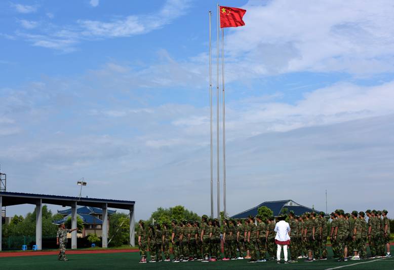 在黄海海风的轻抚下,国旗迎风招展。迎着初升的太阳,2017届高一新生军校进入了第三天。