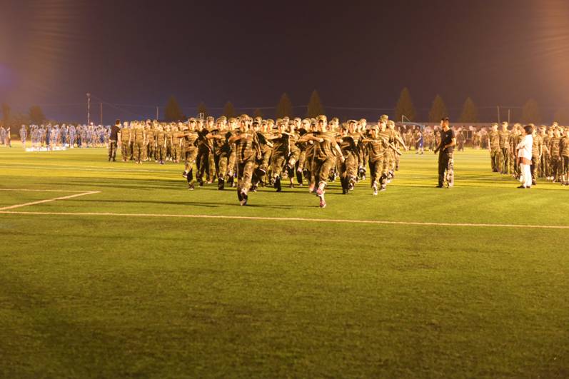 秋日的天气,早晚凉爽,白天炎热。学生克服了训练中遇到的各种困难,军训效果渐入佳境。