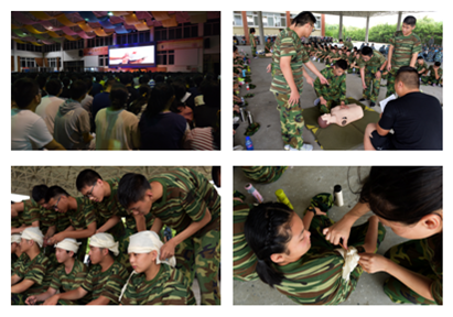 校领导到基地看望参训师生。高一全体参训师生和政教处带队领导吃苦耐劳的精神风貌受领导一致好评。