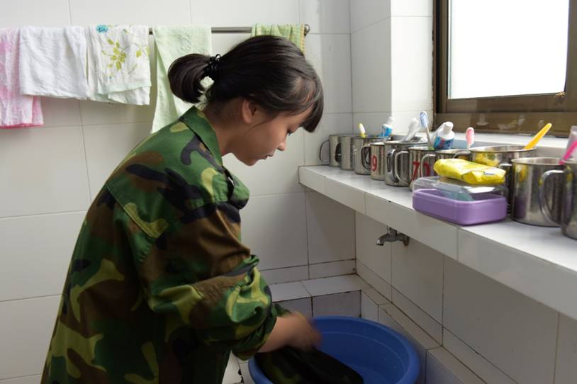下午,大雨倾盆,学生进行内务整理。在教官指导下,我们从叠被子开始训练,相信开学后的独立生活一定会游刃有余!
