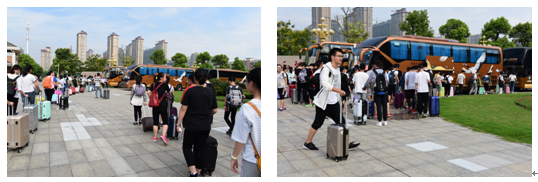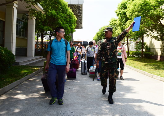 经过近两个小时的车程,同学们来到实践基地。早已在此等候的教官亲切地接待了自己班级的学员。