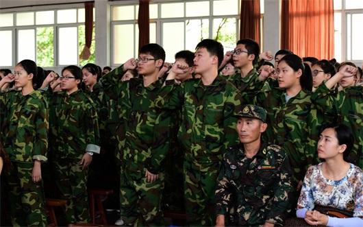 开营仪式上,教育实践基地主任潘卫成、军训大队大队长郑萌萌、天星湖中学副校长葛红军先后讲话。他们希望并鼓励全体学生能在未来的6天军训中发扬解放军不怕苦、不怕累的精神,让自己的青春在训练中闪光,在苦累中升华。