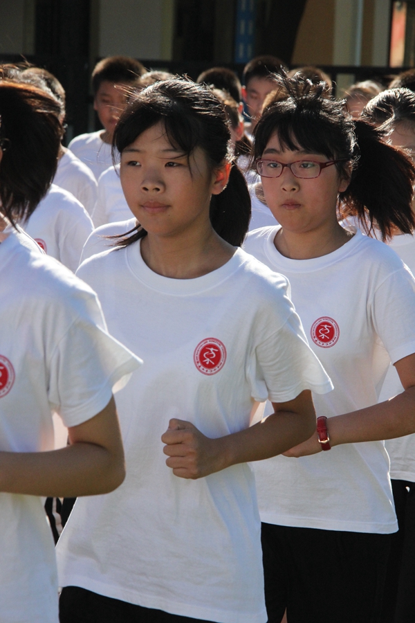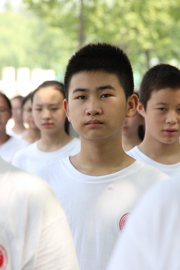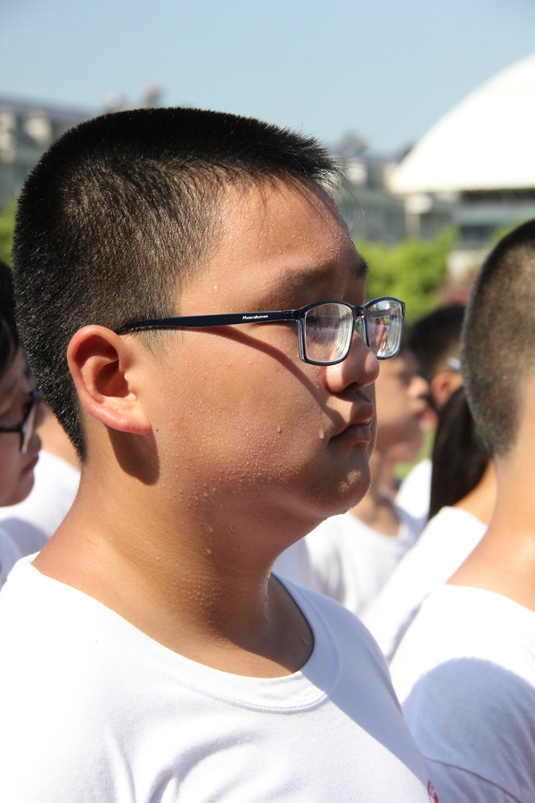烈日骄阳似金色火球,以孤傲之势俯瞰大地,而众人正立于操场正中,认真地努力训练,个个满头大汗。在“1,2,1”“1,2,1”的声声号令中,无不彰显出东中人的坚强、努力。一支支训练有素的队伍正在为即将到来的训练成果展示会全心全意做准备,全身心地投入训练,每个人心中都在默念“加油!加油!”。就算结果不是最好,但是我也要付出最大的努力。