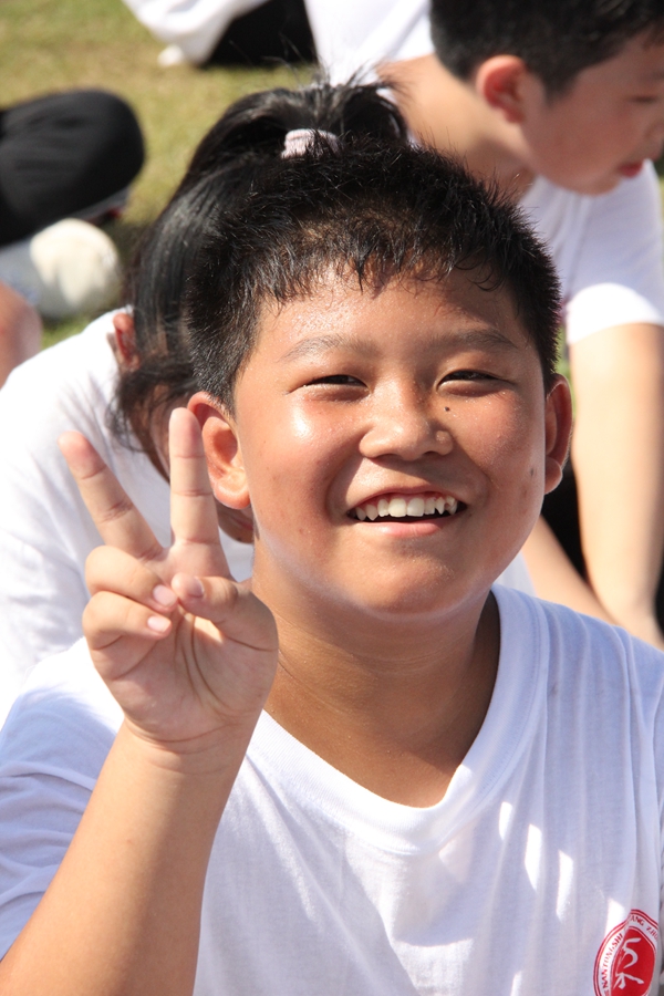 最终,老师大发慈悲,让我们休息十五分钟。所有人欢呼雀跃,一秒中内,花了一小时排的队伍便不见了踪影。我们有说有笑,完全不见了刚才的愁眉苦脸,天气也不怎么热了,太阳也变可爱了,幸好后羿留下了它。可时间娃娃似乎想跟我们闹着玩,把时钟拨得快了又快。老师的哨声吹响了,身体似乎又灌上了铅,拖着沉重的步伐认真排好队,新的训练即将开始。