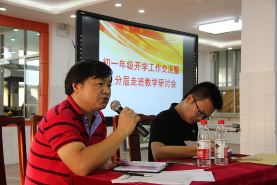 9月8日下午,我校召开初一级部开学工作交流暨分层走班教学研会。会议由初一级部总负责人顾建兵副校长主持,初一级部所有老师参加此次会议。