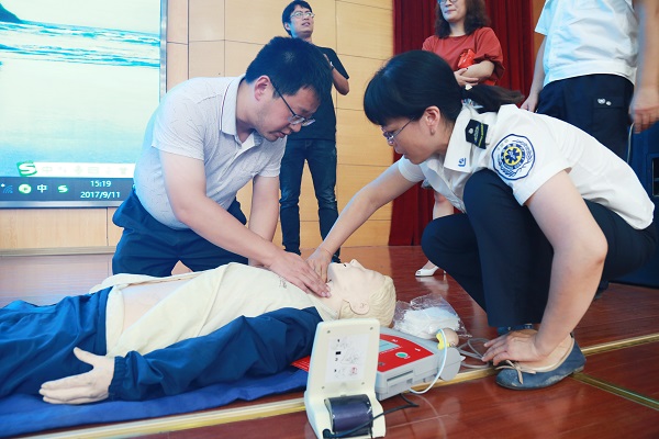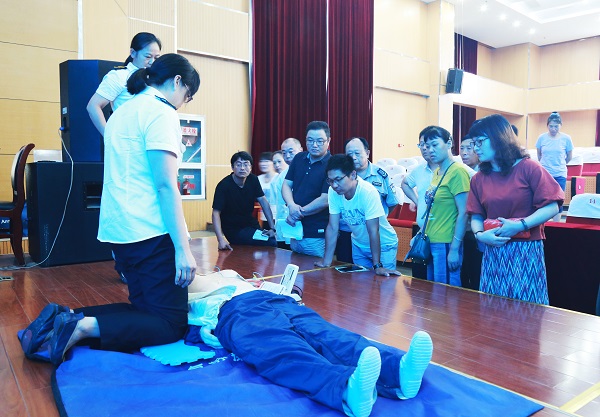 为进一步提高我校教师对学生意外伤害的急救意识,提高其应急救护技能,9月11日下午我校聘请了市红十字会三名救护专家对生活指导老师、体育老师及所有保安进行了卫生救护“AED”项目专项培训,并且借助模拟器材做了现场演示。本次培训,使教师们有了现场急救的意识,初步掌握了抢救程序、动作要领及有效指征,提高了面对突发事件的应对能力,为全校师生自身的身体安全健康,筑起了一道生命的防线。
