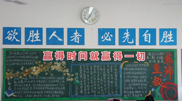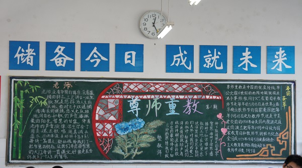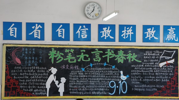 黑板报一直是天星湖中学进行文明宣传的美丽风景线。这一期板报以“新学期新起点”或“尊师重教”为主题,内容丰富多彩,进行开学常规教育、文明礼仪宣传、学习奋斗立誓、尊师重教倡议,把践行社会主义核心价值观等要求都精巧地融入到黑板报之中,具有重要教育意义。