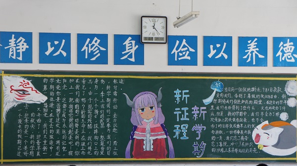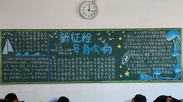 新学期开始,各班级按照学校政教处工作安排,积极筹备、精心设计新学期的第一期黑板报。9月6日下午,由学校统一组织评比。