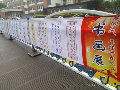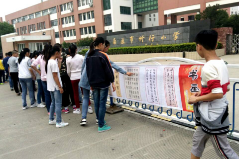 书法和绘画是美育的重要途径,能够丰富孩子的文化内涵,提升他们发现美、欣赏美、创造美的能力。为欢庆国庆,喜迎第十九大的顺利召开,9月26日始,竹行小学就隆重展出了师生的书画作品,制成了两幅19米、一幅6.8米长的书画长卷,向祖国母亲68岁生日和即将召开的十九大献上了一份特殊的礼物。