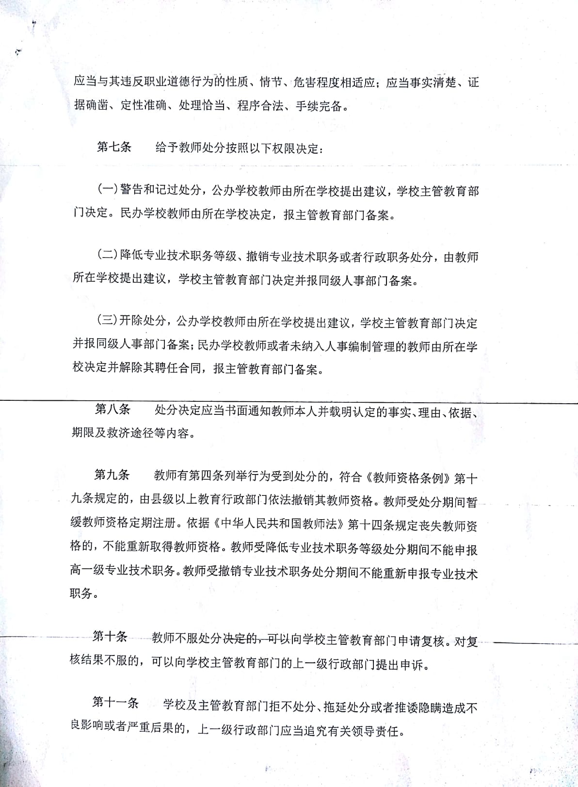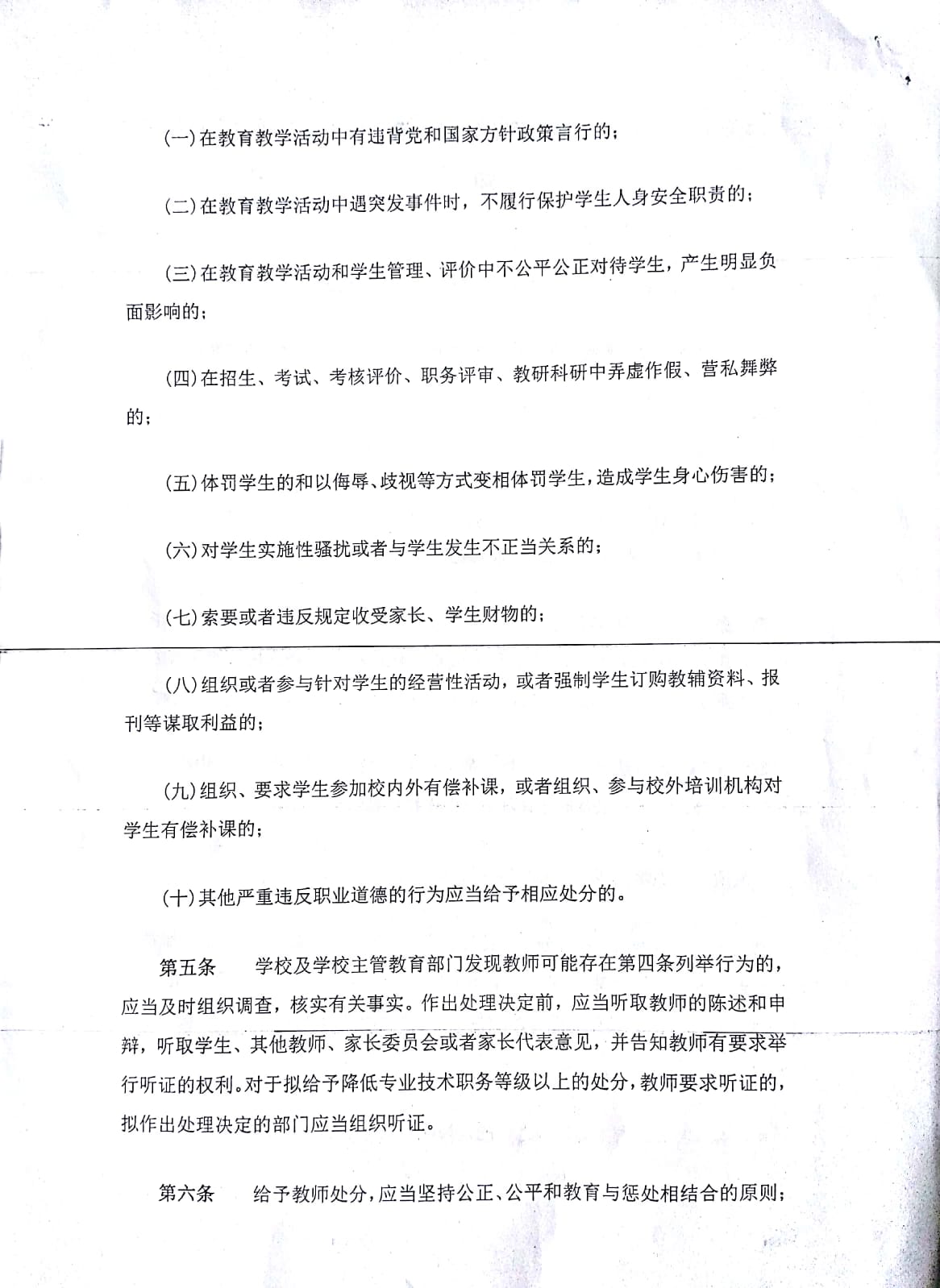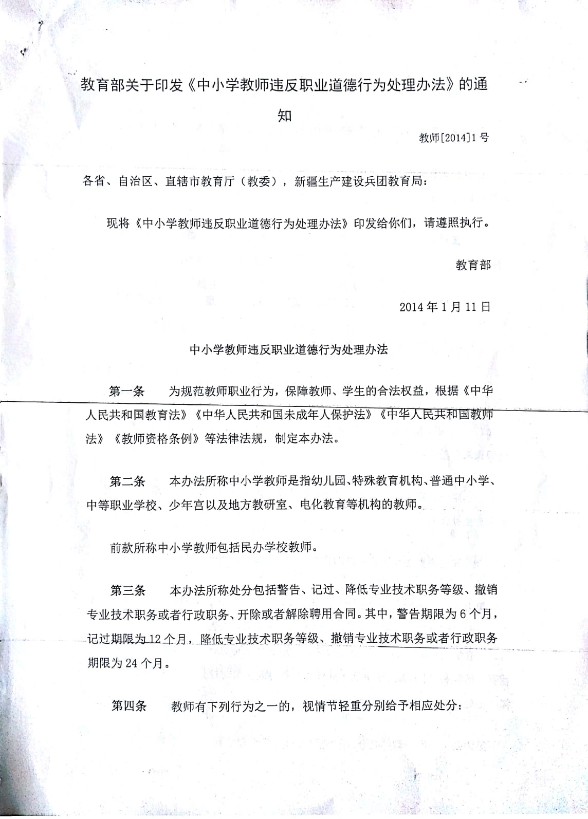 教育部关于印发《中小学教师违反职业道德行为处理办法》的通知