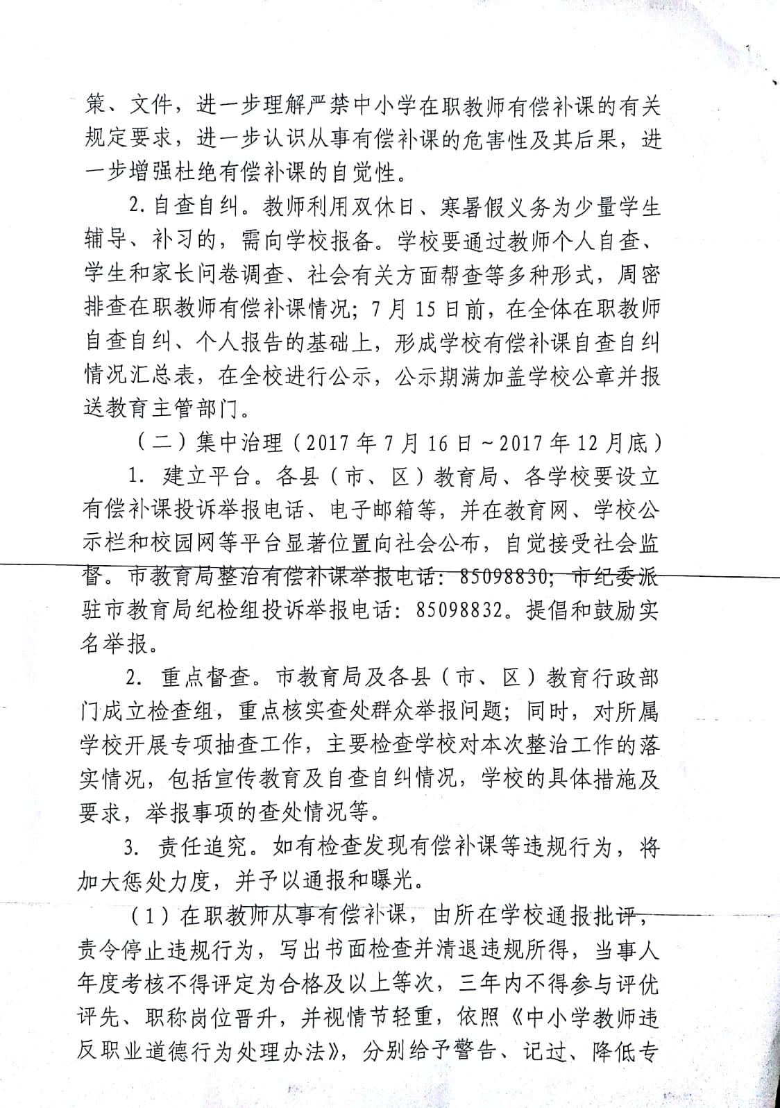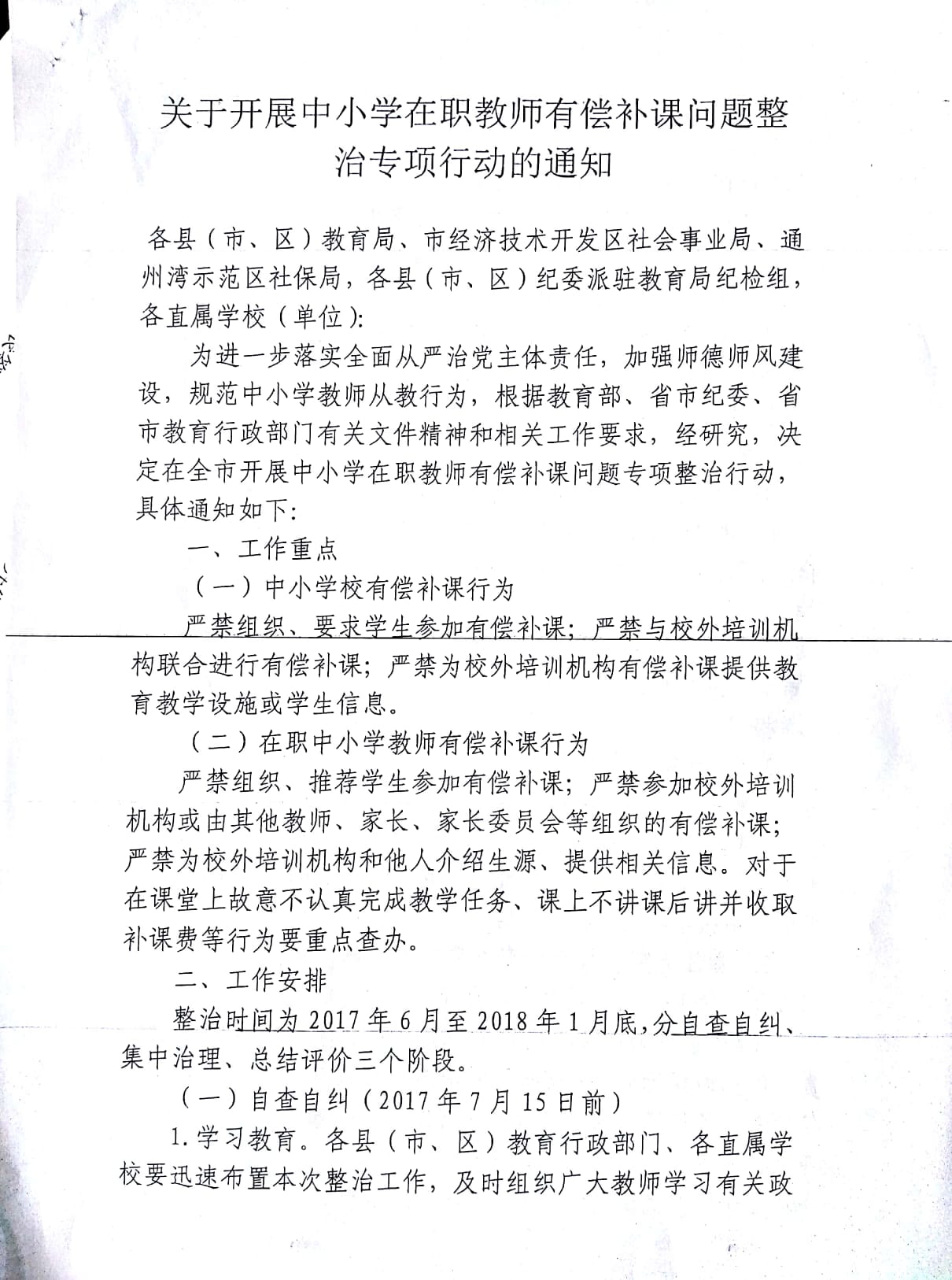 关于开展中小学在职教师有偿补课问题整治专项行动的通知