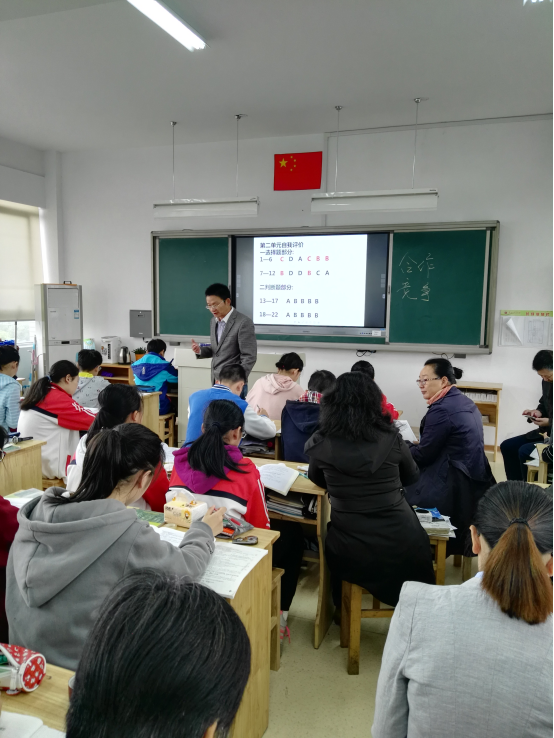 课堂上,冒老师深入浅出,幽默风趣;点评适切,以生为本;关注考点,注重思维。上课结束后,教务处郭小平主任组织大家进行评课,大家畅所欲谈,气氛融洽。最后教务处郭小平主任指出“五十知天命,六十耳顺,在座的老教师们,虽然年纪大了,但是仍然在平凡的岗位上率先垂范,以身作则,看自习课,长久以来为东中挥洒着热血。你们是东中的顶梁柱,是东中的脊梁,是年轻教师学习的榜样。希望老教师们继续努力,振奋精神,享受工作,撸起袖子加油干,为了东中更灿烂的明天而奋斗!”