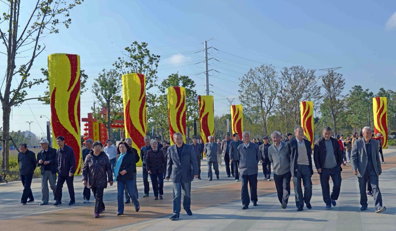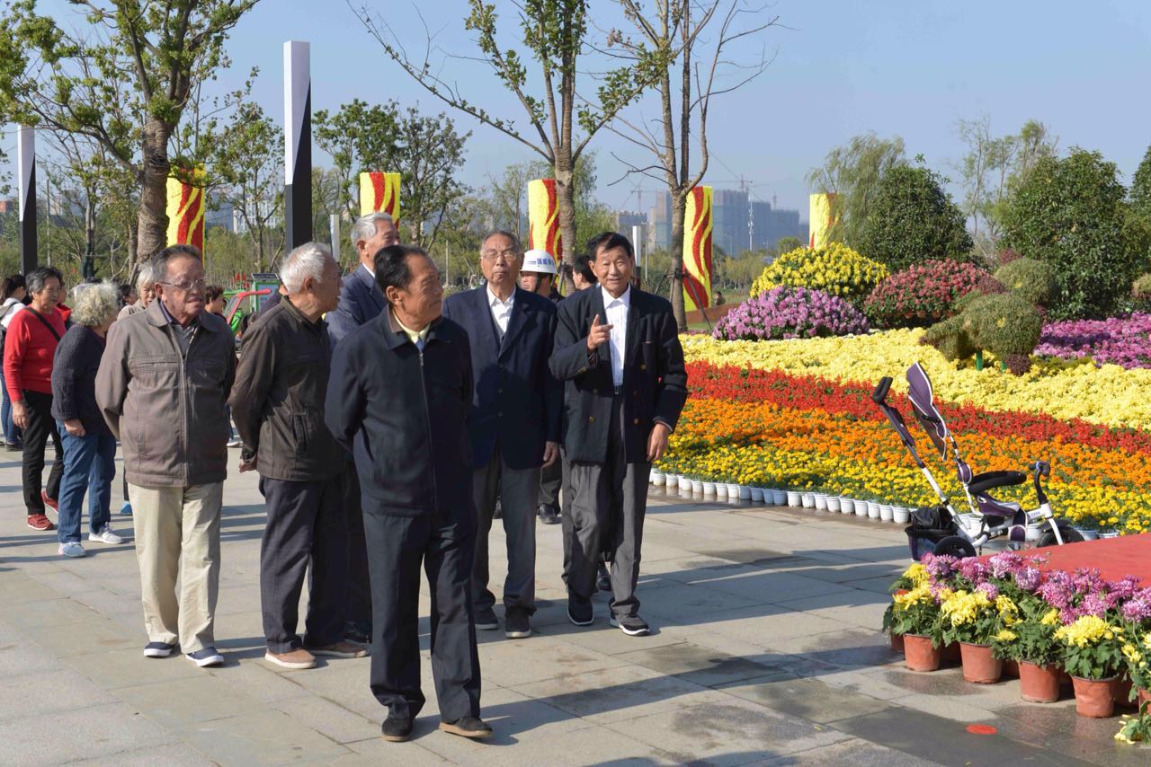乘着大巴,老教师一行来到了菊展现场。景区内碧波荡漾,美丽的菊花千姿百态。金秋的生态通廊因为有了菊花的装点,美得宛如仙境。在几位校长的陪同下,老教师们行走在花丛中,造型各异的主题菊花布展让他们流连忘返。在谈笑风生中,他们显得更加神采奕奕,精神矍铄。每到一处景点,老教师们都拍照留念,还不时和好友合个影,用镜头记录下这美好的瞬间。