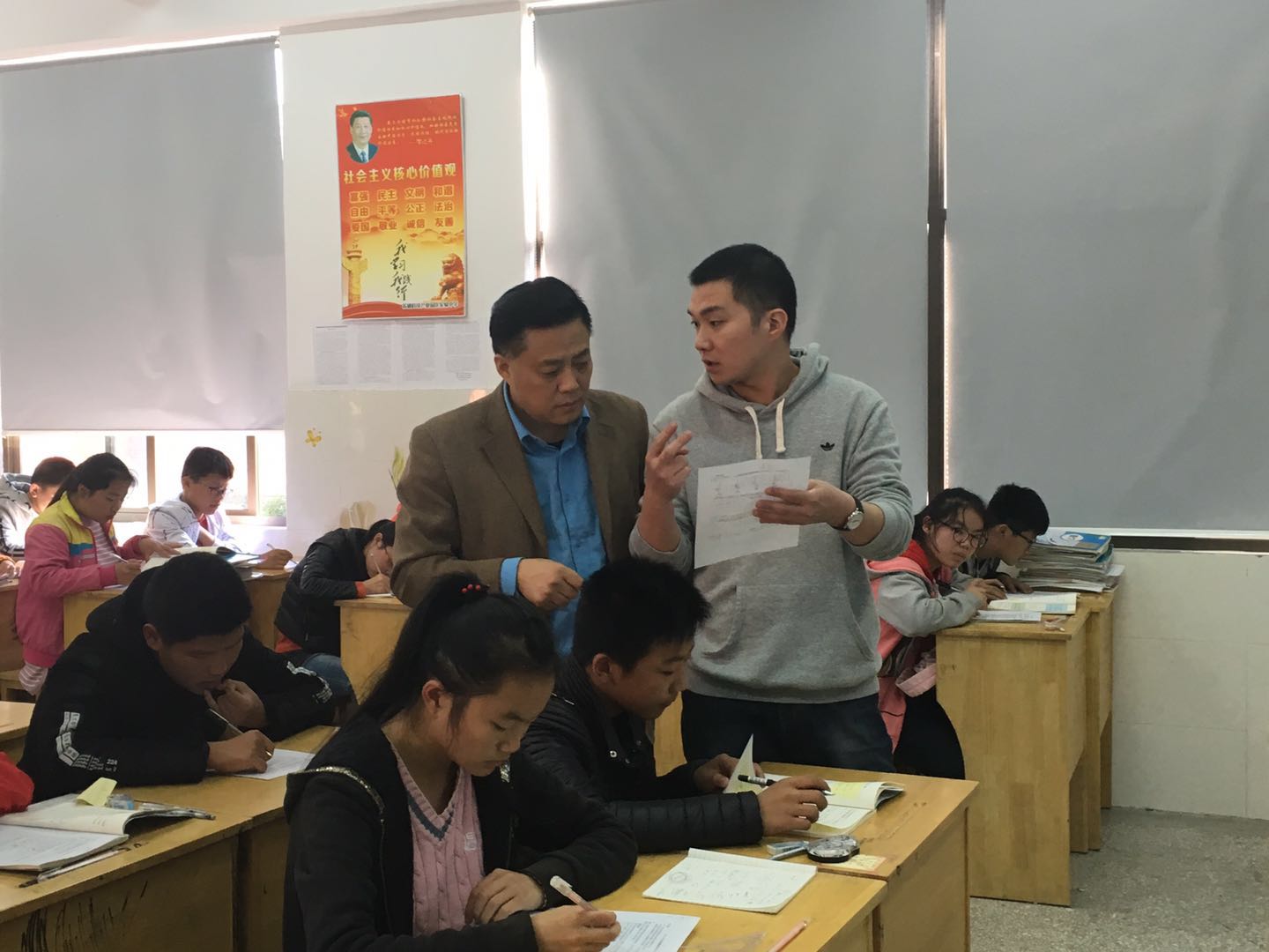 在了解了学校发展的基本情况后,符院长深入课堂,重点听了九年级的数学课,并结合转课全面了解了学校课堂教学情况。在随后进行的研讨会上,符院长就教师的课堂教学情况逐一点评和指导,并结合我校实际就课改的理念、模式和过程进行了全面的点拨,帮助学校解决课改瓶颈。除此之外,针对学校在发展中存在的困惑,他提出自主先学要到位;合作学习要深入;小组展示要层次。