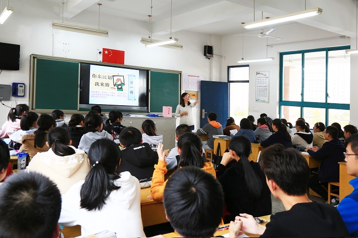 11月6日,赵飞燕老师在高一(6)班执教班会课“心若有容,天地自宽”。班会设计主题明确,形式多样,环环相扣,通过游戏导入、学生表演、观看视频、学生讨论等活动环节的设计,一方面让学生们明确了“宽容”的内涵和意义,另一方面又从体验角度让学生懂得了如何去“宽容”,学生热情参与,台上台下互动热烈,取得了良好的教育效果。葛红军副校长,政教处曹俊飞主任、王东主任以及多名班主任代表到场观摩。