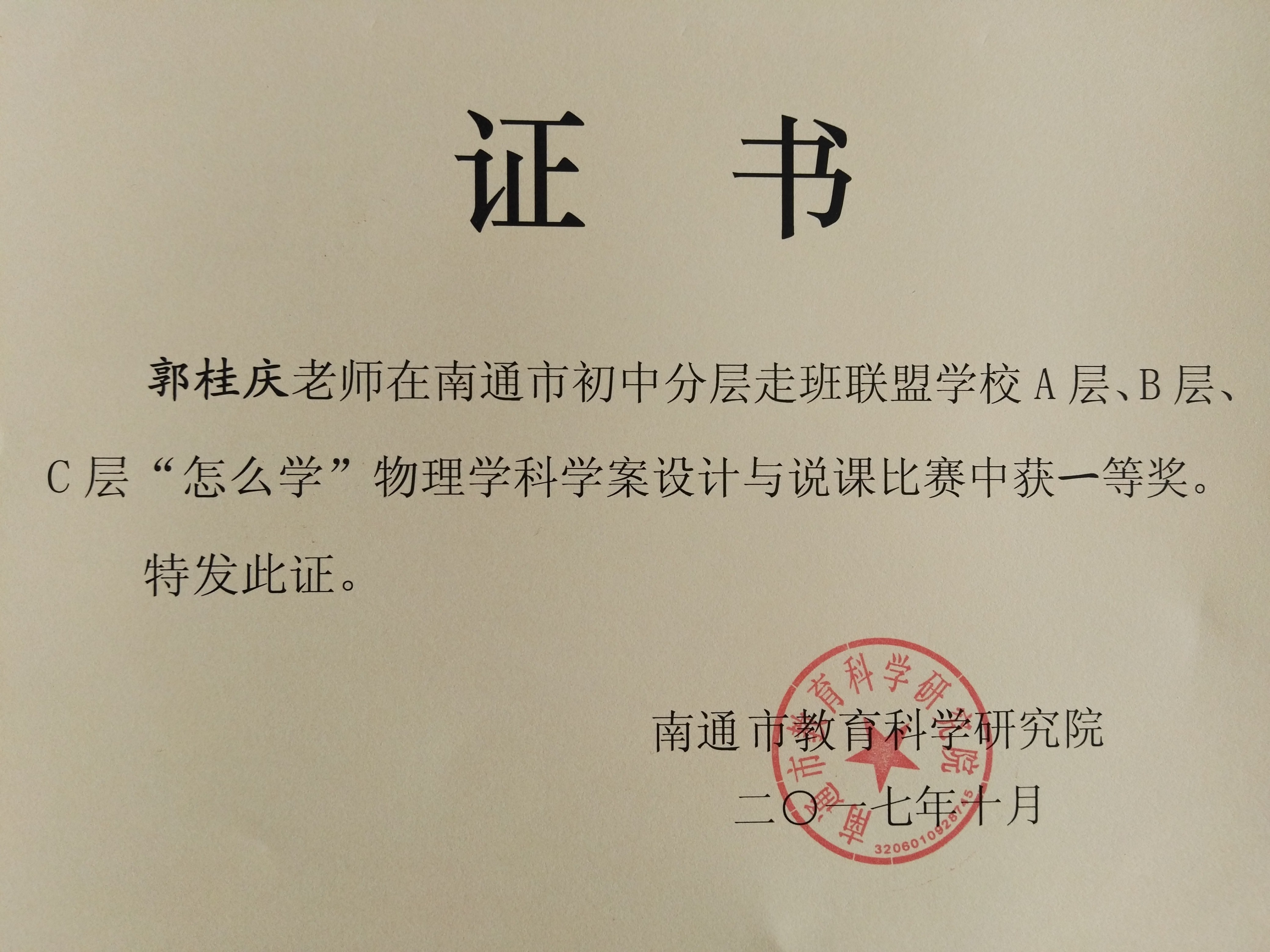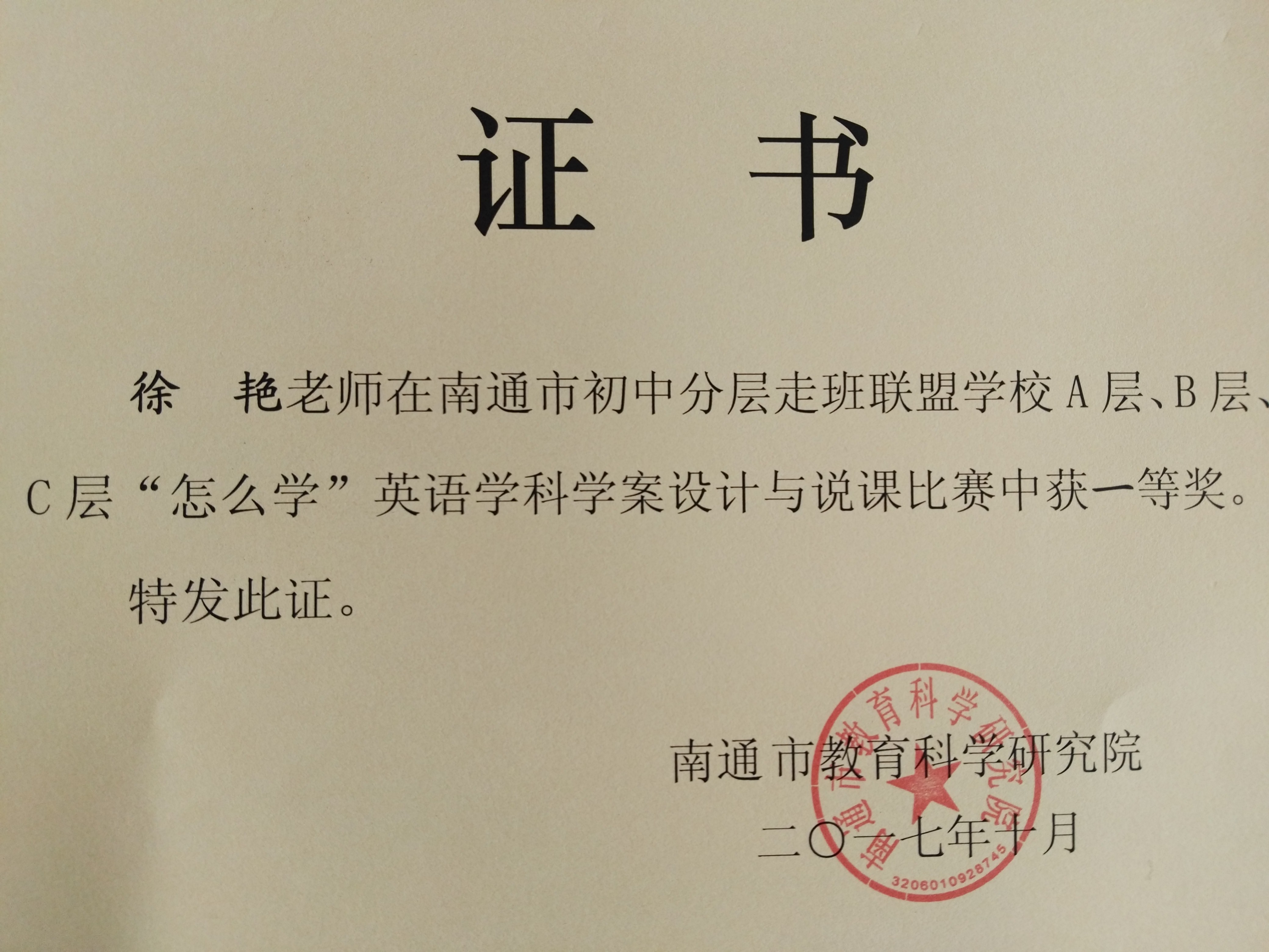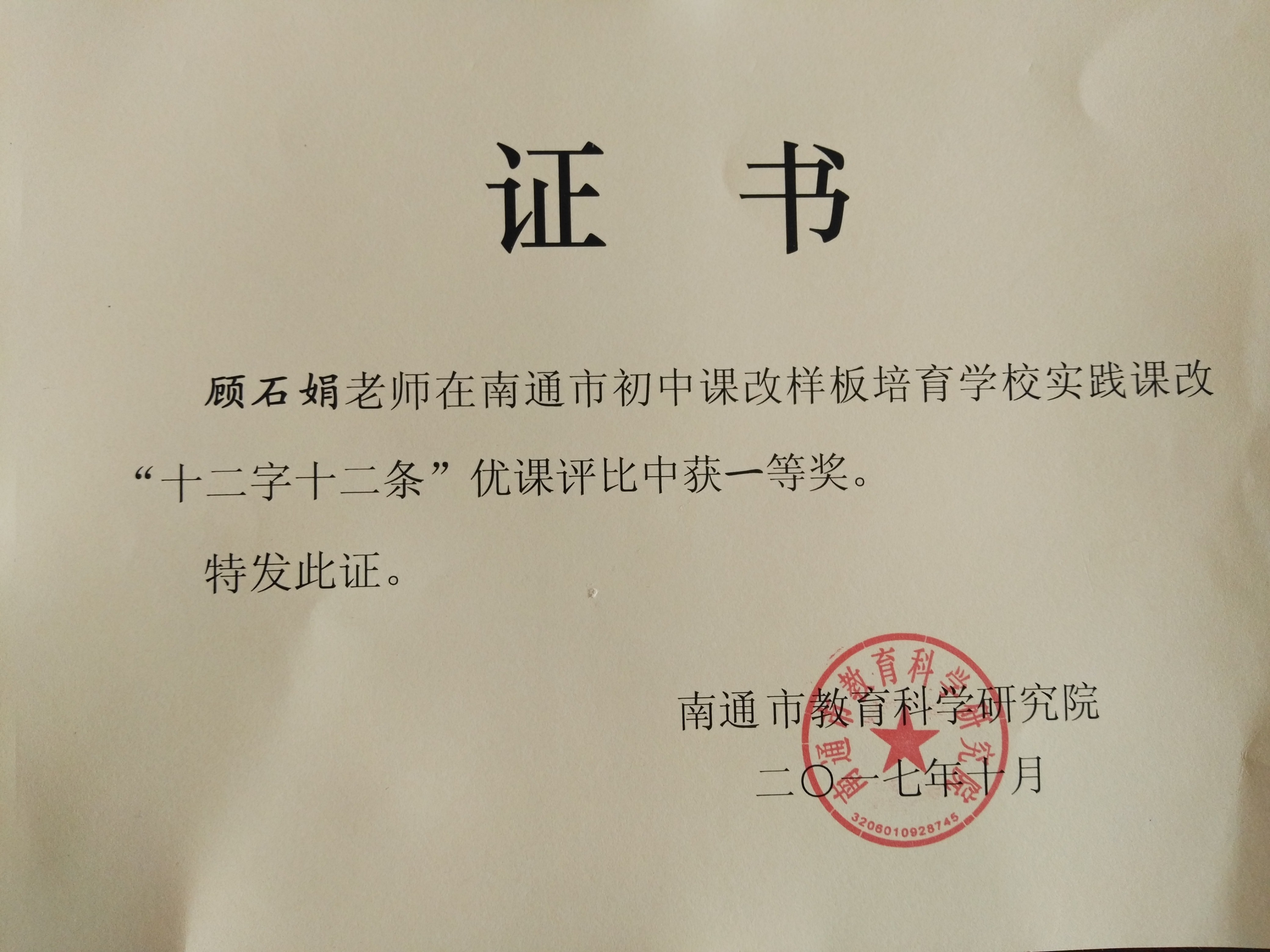 本学期,我校立足课改,以课堂为阵地狠抓教学管理,营造了浓厚的教、研氛围,老师们积极进取,勤奋钻研,涌现出一批课堂教学改革的骨干力量,并在南通市各类教学比武中摘金夺银。在分层走班A层、B层、C层“怎么学”学案设计与说课比赛中,邵维亚、郭桂庆、徐艳三位老师分获数学、物理、英语南通大市一等奖,虞峰、瞿潇获得二等奖;在课改样板校“十二字十二条”优课评比中,顾石娟获语文大市一等奖,周海峰获市二等奖;在现代信息技术与学科整合教学比赛中,黄玲玲获英语大市一等奖。祝贺获奖的老师,这些成绩是教师本人的精彩、也是备课组的精彩。学校期待更多老师的精彩!(21日比赛结果尚未公布)