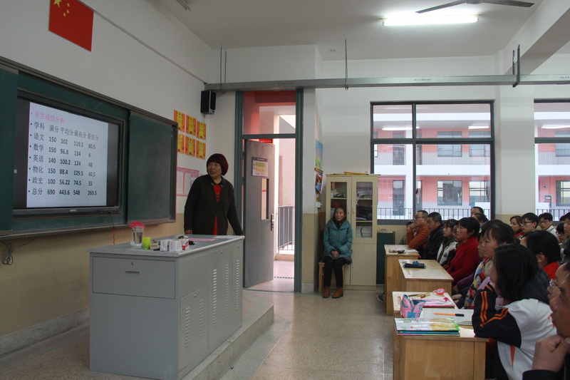会议的第二阶段在各班教室进行。班主任通过电子黑板形象直观地向家长介绍了班级情况及期中考试成绩。任课教师和学生代表也纷纷走上讲台,就学科特点及学习方法等方面与家长进行了深入地交流。