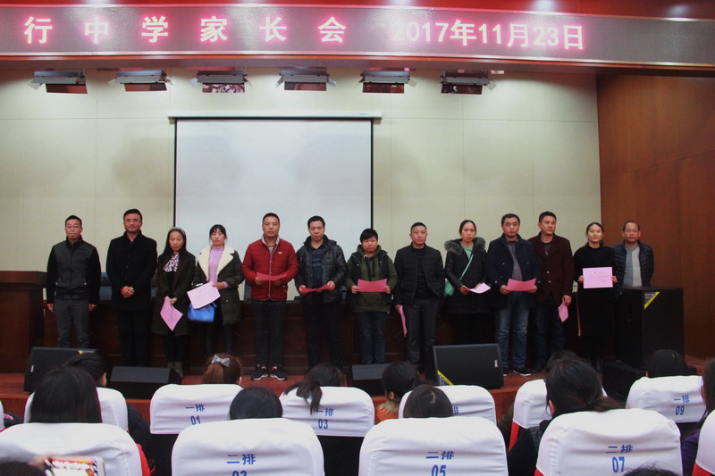 在报告厅,沈明明副校长首先代表学校对各位家长的到来表示热烈欢迎,随后介绍了近期我校全体师生在教育、教学及各类竞赛中取得的成绩,并表扬了期中考试中取得优异成绩和进步明显的学生。他还向初一家长分析了小学教育与初中教育的衔接问题,告诉家长要从一个新的角度看待初中学习,多给孩子关心、信心。这些情况的介绍让家长近距离了解学校所取得的成就及发展规划,对自己孩子能有良好的前景多了一份信心。报告结束前,校领导还为新一届初一家长委员会成员颁发了聘书,并与他们合影留念。