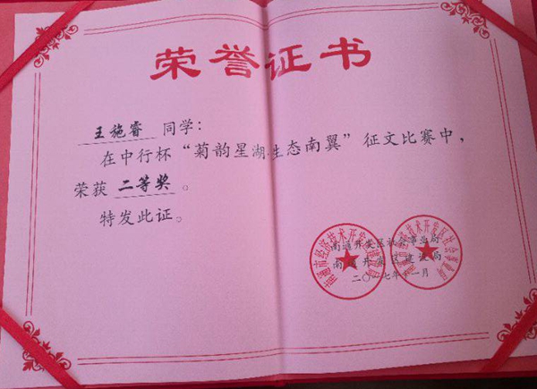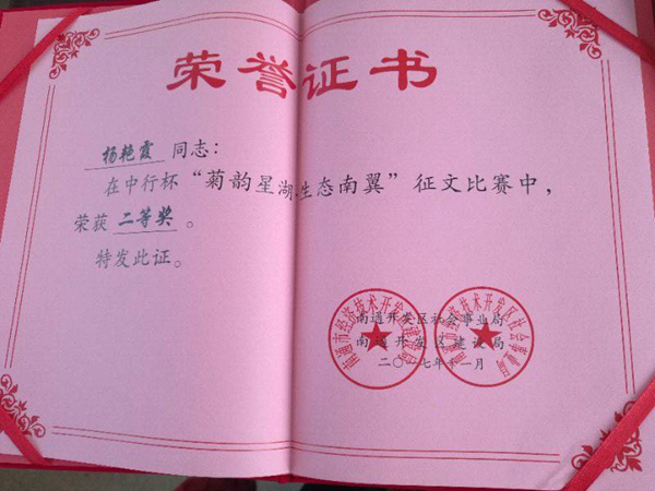 11月26日,秋日和煦。能达生态通廊,比平日更添了一种喜庆。领导、学生、家长、摄影家们,于十点钟云集第28届菊花展室内展示馆,参加中行杯“菊韵星湖,生态南翼”江苏省征文、摄影、绘画比赛颁奖仪式。