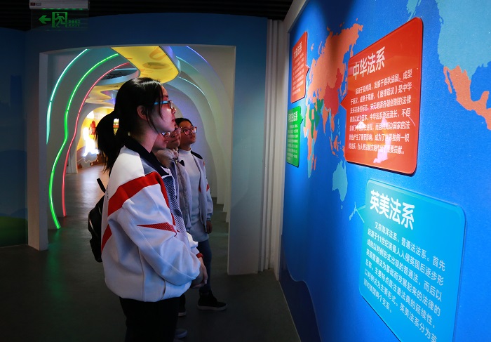 近期开放的法制教育展馆吸引了无数学生的目光,展馆选取极具典型意义的多个案例,以通俗易懂的语言,配合照片、插图、漫画等清晰直观、易于理解的内容形式,揭示各类违法行为及其危害,提高了同学们学法、知法、守法、用法、护法的意识。