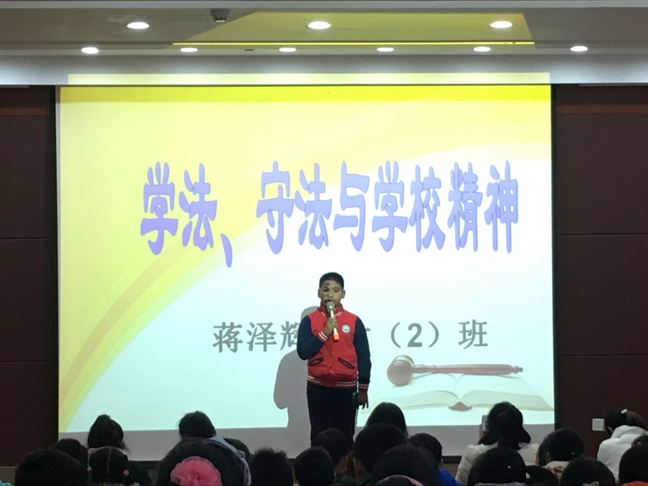 五年级的学生,为我们带来了精彩的红色诗篇,《红心向党》《红领巾在心中飘扬》,时而舒缓,时而激昂的朗诵,将我们的思绪带向远方,那里有我们努力的目标——建设繁荣富强的祖国。六年级的学生,即将小学毕业,他们已经意识到作为国家小主人所肩负的重任,学习法律知识,建设法治社会,演讲的选手们娓娓道来,充分展示出学生自信向上的精神面貌。