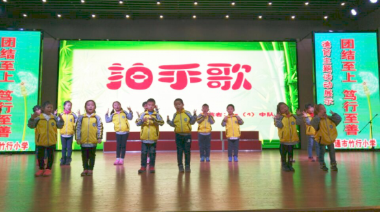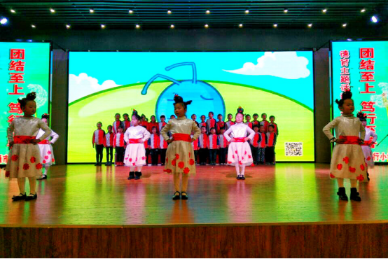 瞧!一(3)班的小朋友们迫不及待,他们用动听的声音唱出对团结的理解,用动人的舞姿跳出团结的力量。