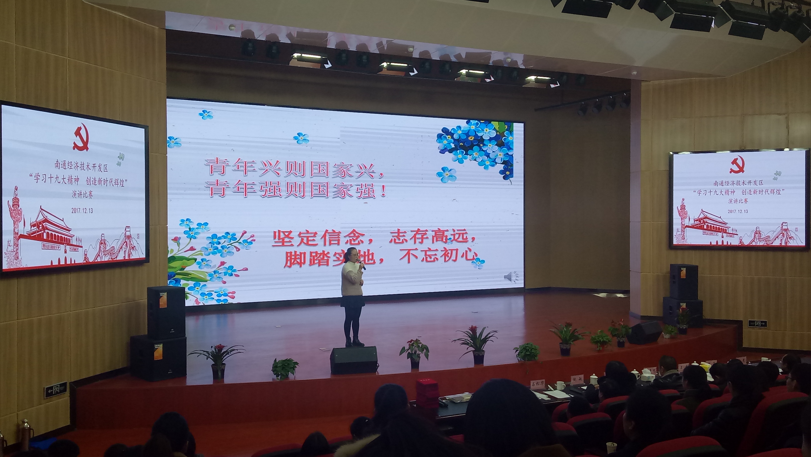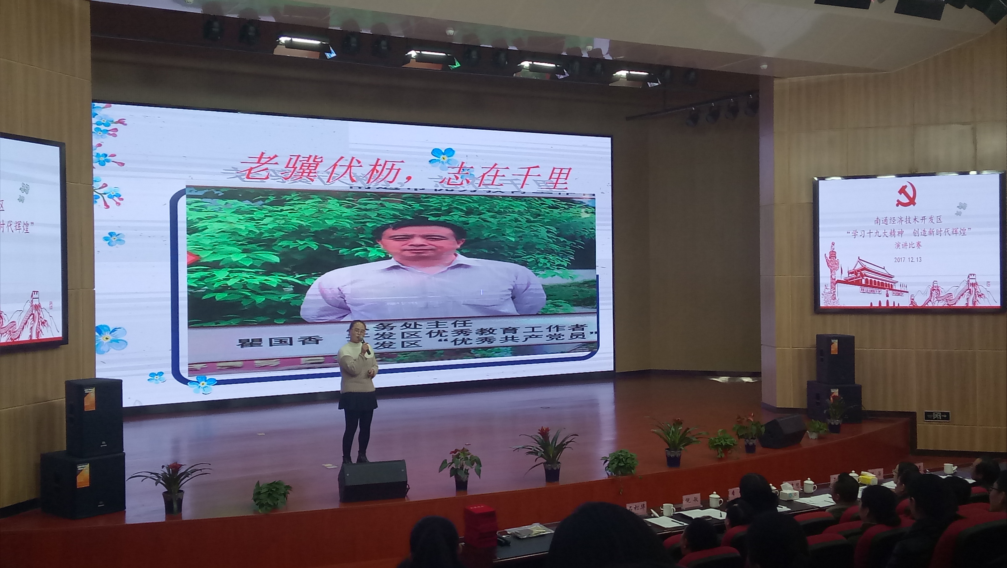 12月13日下午,由区党工委、管委会办公室(宣传部)、组织部、社会事业局联合组织的“学习十九大精神创造新时代辉煌”演讲比赛在南通开发区能达小学举办,有来自开发区各街道、各机关、各学校等19位选手参加了比赛。
