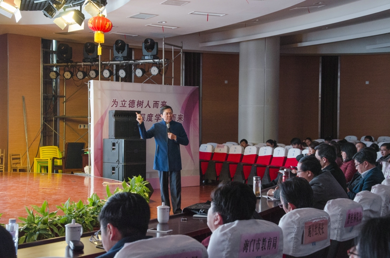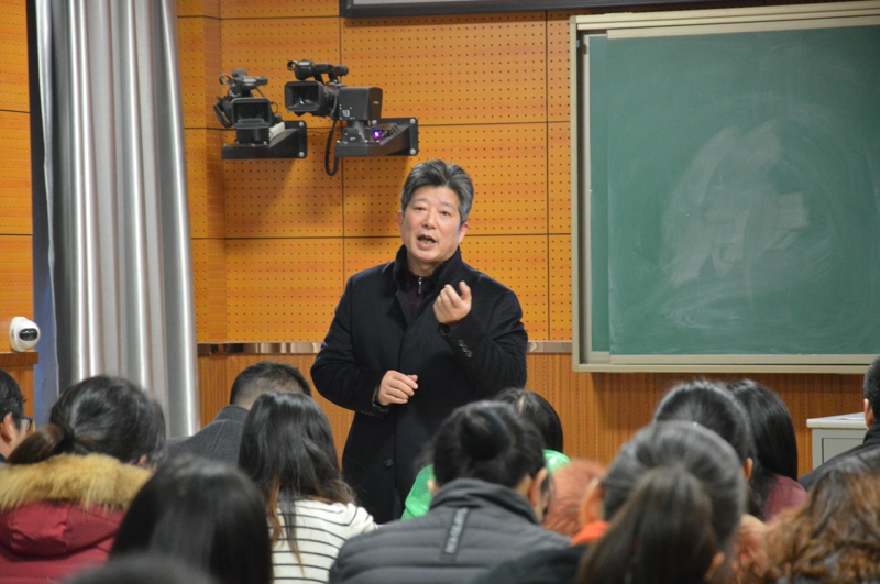 下午的大会由南通市教育局基教处张华处长主持,金海清副局长围绕“以立德树人为指向的课堂教学改革”话题,发表了热情洋溢的讲话,金局长的报告从十九大精神提出的教育发展要求以及中华民族的文化自信的角度诠释了本次会议主题的重要意义,充分肯定我市课改的成绩,特别对高师附小的课堂以及学生在“大生课堂”沐浴下的成长状况大加赞赏。同时,金局长也对今后我市小学课改工作提出了要求。金局长的报告既高屋建瓴又深接地气,而且激情四射,充满了感染力,听众不时致以会意的笑声和热烈的掌声。社会事业局副局长倪敏、教育处季春华处长、教师发展中心杨苏主任等出席了会议。