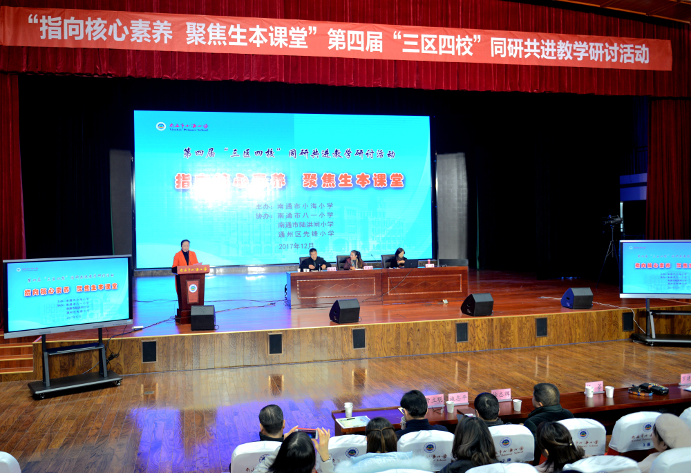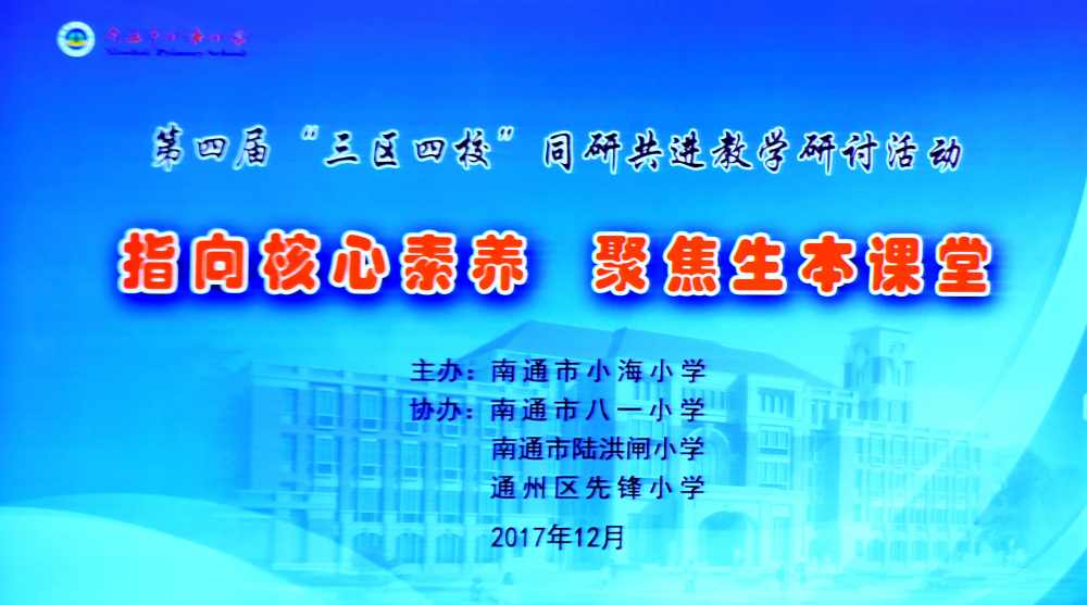 12月21日,虽时值冬至,却艳阳高照,小海小学的校园格外温暖,格外喜庆。第四届“三区四校”同研共进教学研讨活动在小海小学隆重举行,来自崇川、通州以及开发区各学校的领导、专家及老师们参加了此次活动。