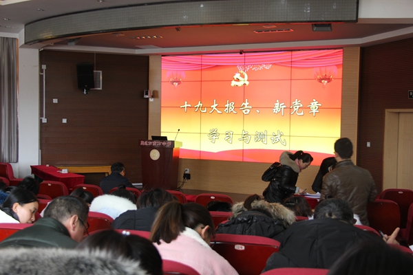 为深入学习贯彻党的十九大精神、学习新党章,进一步落实南通市关于《全市县以上党委(党组)中心组党的十九大精神专题学习计划》的通知,教育引导我校党员教师自觉把思想和行动统一到党的十九大精神上来。1月22日中午12:30,东方中学党总支组织全体党员教师开展十九大知识学习测试活动。