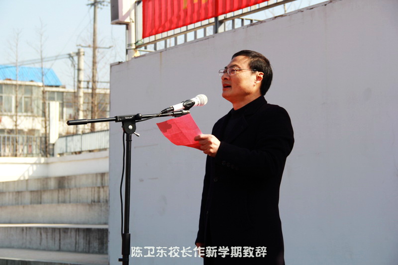 最后,陈卫东代表学校作新学期致辞。他回顾了2017年全校师生在教育、教学和各类竞赛中取得的优异成绩,希望每个学生能立大志,勤学习,行为文明,共同营造一个文明、向上的美好校园。