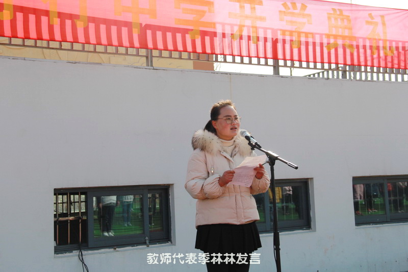接下来学生代表陈小玉和教师代表季林林依次发言。陈小玉同学表示,作为毕业班学生,我们不会辜负师长的期望,实现六月的梦想。季林林老师道出了全体老师的心声:在新学期,我们将一如既往,以对学生负责和对家长负责的态度,敬业务实,开拓进取。