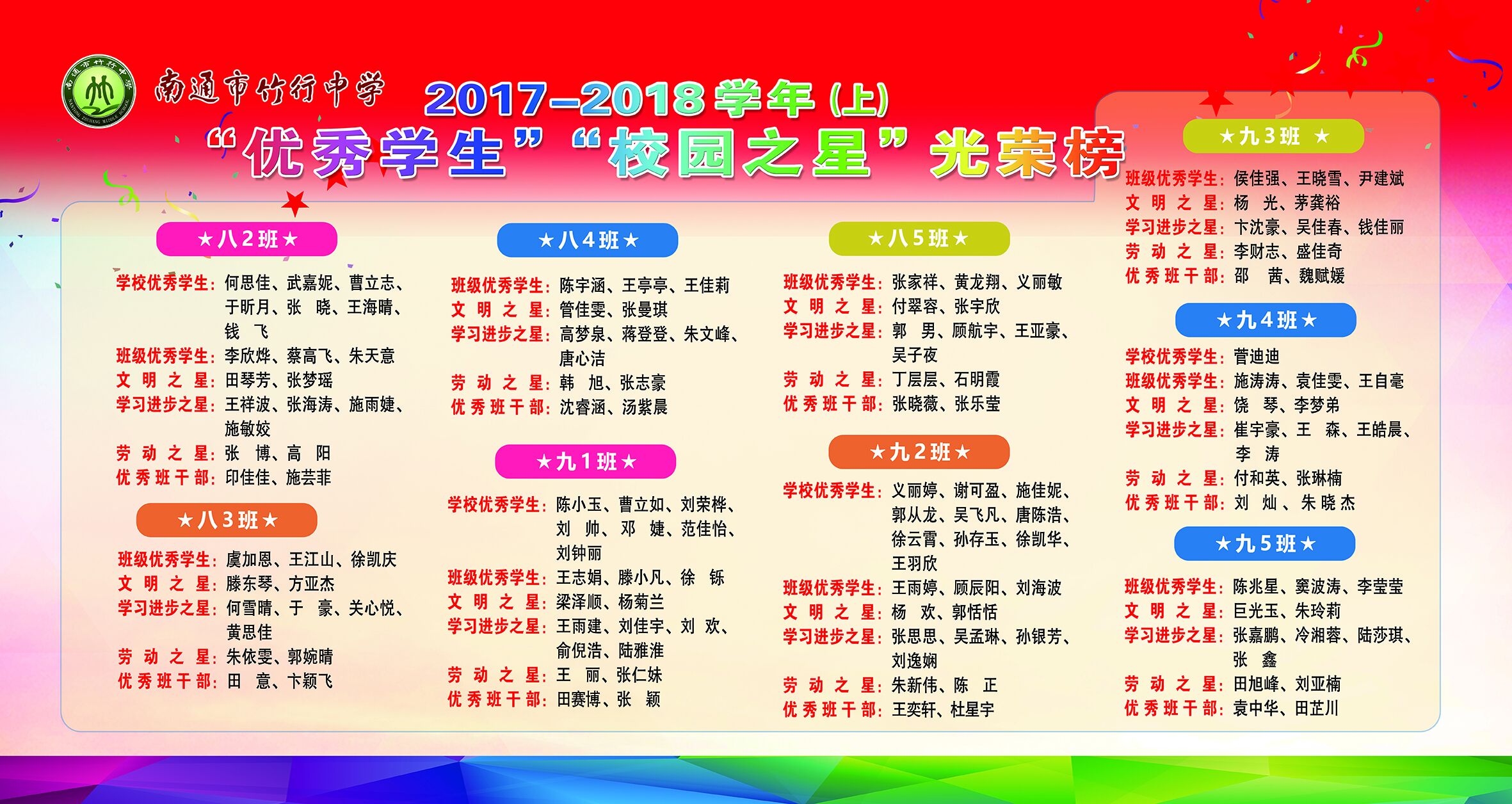 2017--2018学年上"优秀学生""校园之星"光荣榜