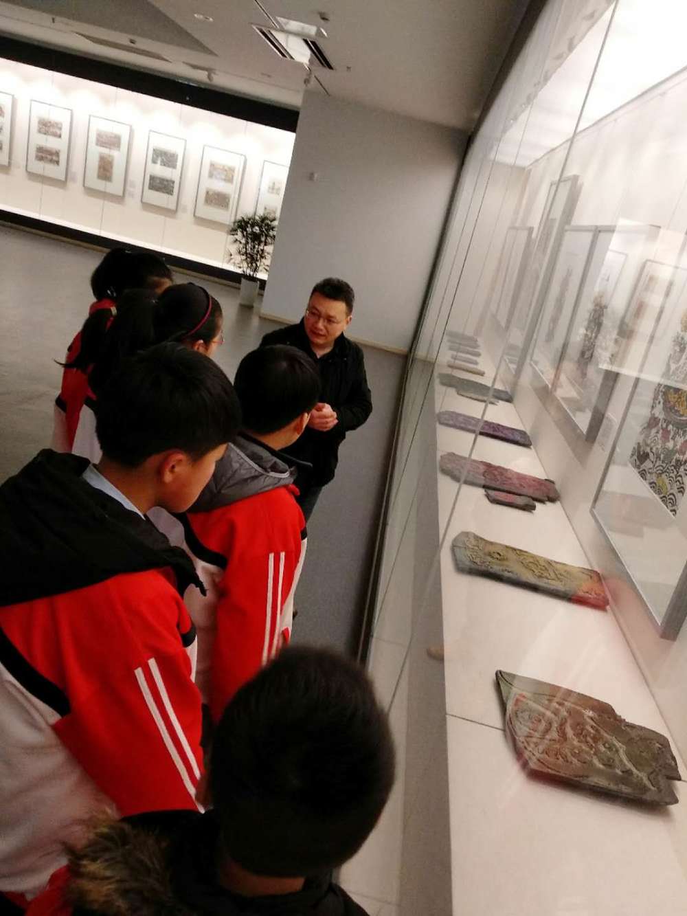 中午12点整,在初一年级总支书记滕龙老师带领和美术组严莉老师的带领下,工作坊学员施博文(一18)、朱兴圆(一18)、樊嘉伟(一21)、卞雯雯(一15)、吴欣仪(一22)、张佳欣(一22)6名学生分成两组,有序乘车前往南通博物苑观展采风。南通博物苑的工作人员分别对南通民间木版年画的产生、成长、成熟以及生产制作工艺等方面进行了解说。