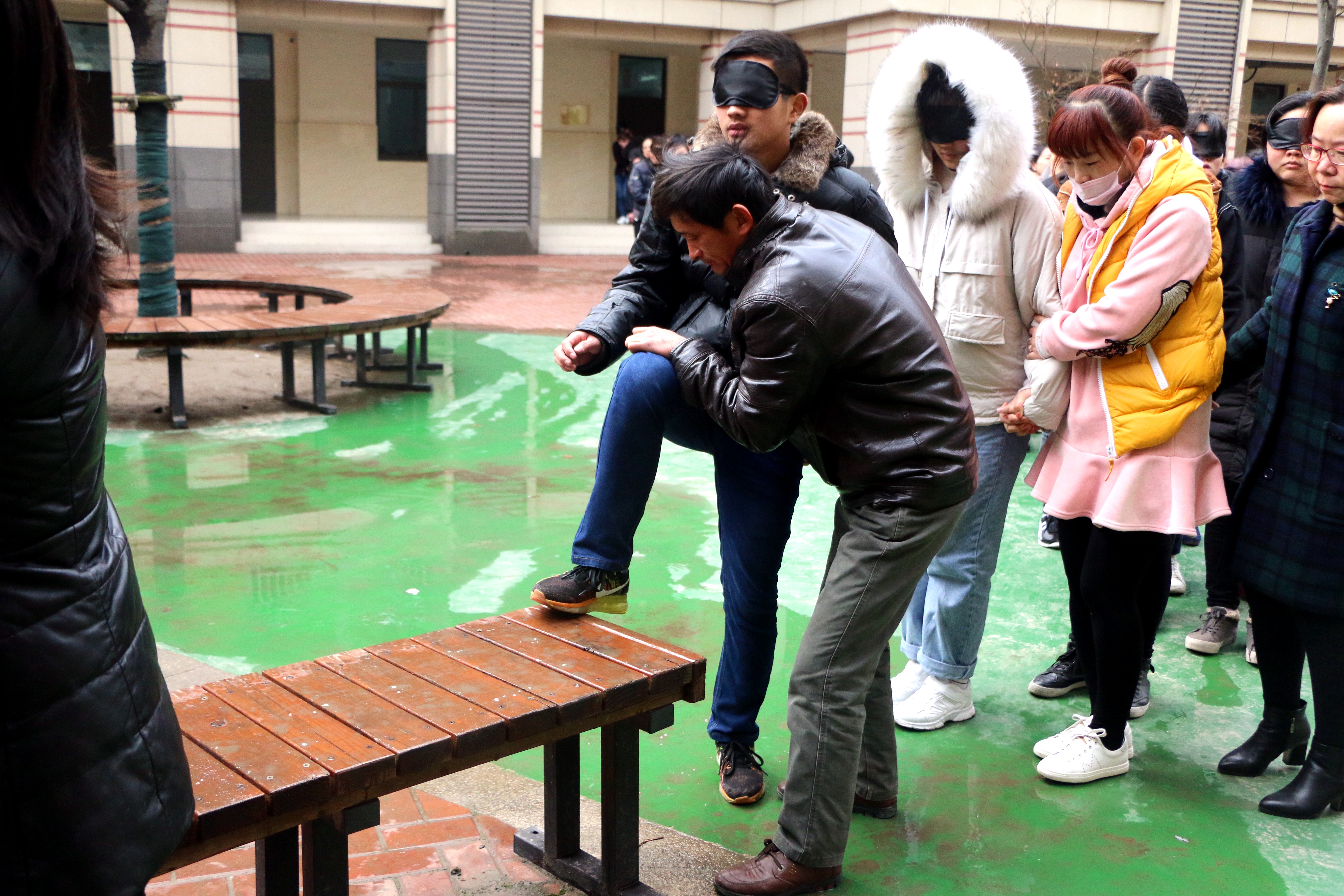接下来,是“漫漫风雨路”主题活动。一曲《牵手》的旋律中,家长和孩子们戴好眼罩,手牵着手,一起向既定目标行进。在彼此的默契中,他们攻克了一道又一道“难关”,完成了一段又一段“历程”。这是一个相互理解、相互信赖的旅程,这又是一个相互支持、相互鼓励的旅程。活动中,家长和孩子动情地拥抱,他们分别写下20年后的约定。