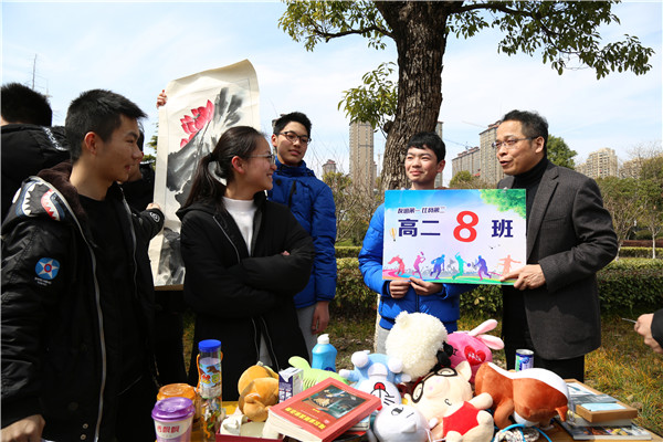 3月5日,雨后初晴,天星湖中学一年一度的爱心义卖活动又在滋兰楼前热力开场。
