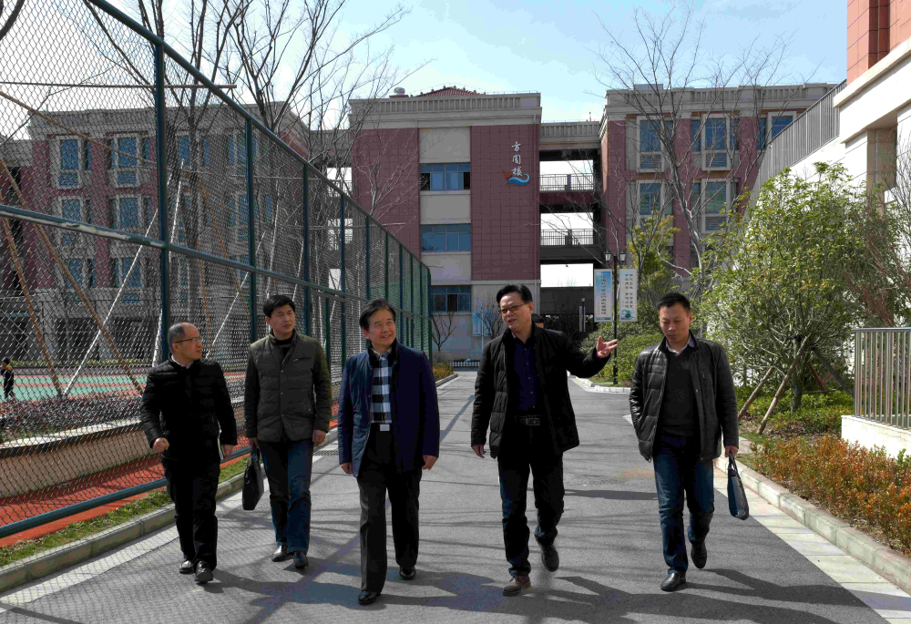 检查组一行首先实地查看我校办学现状,他们先后参观了礼堂、操场等场地。教育局局长助理葛俊对开发区在教育事业的重大投入赞不绝口。