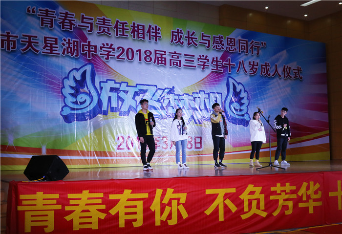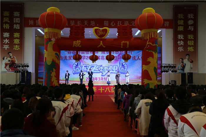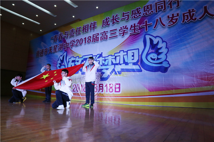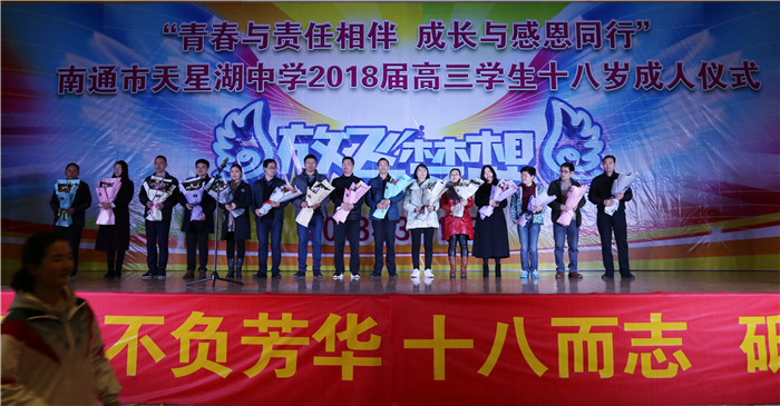 318日下午 “青春与责任相伴 成长与感恩同行”南通市天星湖中学2018届高三学生成人仪式在学校风雨操场隆重举行。