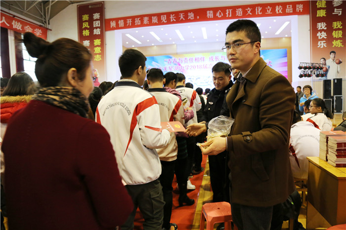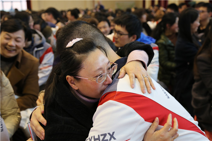 在感念父母恩环节,家长们为子女佩戴上光灿灿的成人徽章,并和子女交换了书信,信件的字里行间饱含了父母的殷切希望与真挚祝福,子女们也毫不吝惜地将他们最诚挚的谢意和最热烈的拥抱献给了自己的父母。最后全体学生齐声高唱《让我留在你身边》,整齐响亮的歌声传递着对家长和老师的感恩之情。