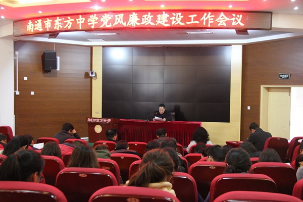 3月23日,东方中学在东区二阶召开2018年党风廉政建设工作会议,围绕进一步明确学校党风廉政建设工作目标任务和抓好党风廉政建设责任落实进行了部署。会议由学校党总支书记戴继华主持,学校全体党员同志和行政组同志参加了会议。