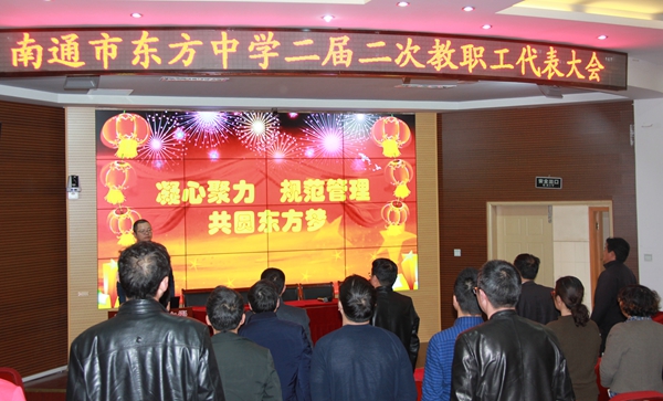 3月29日中午,我校二届二次教职工代表大会在学校二阶举行。全校教师代表应到68人,出席会议62人,符合法定人数。会议由工会副主席阚云光同志主持,大会在雄壮庄严的国歌声中隆重召开。