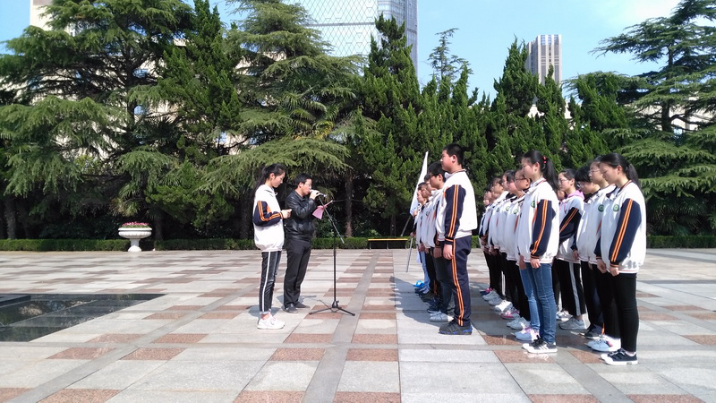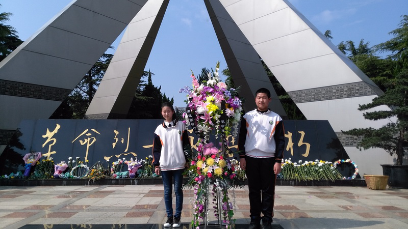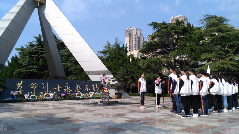 接下来,政教处高忠主任和学生代表于昕月在烈士碑前致辞。高主任鼓励同学们要向革命烈士学习,奋发图强,成为社会的有用人才;于昕月表达了对烈士的敬仰之情,并表示不负期望,努力学习。仰望着掩映在森森松柏丛中的巍巍纪念碑,聆听着老师、同学激情满怀的誓词,在场学生无不感到自己的肩头多了一份沉甸甸的责任和使命。