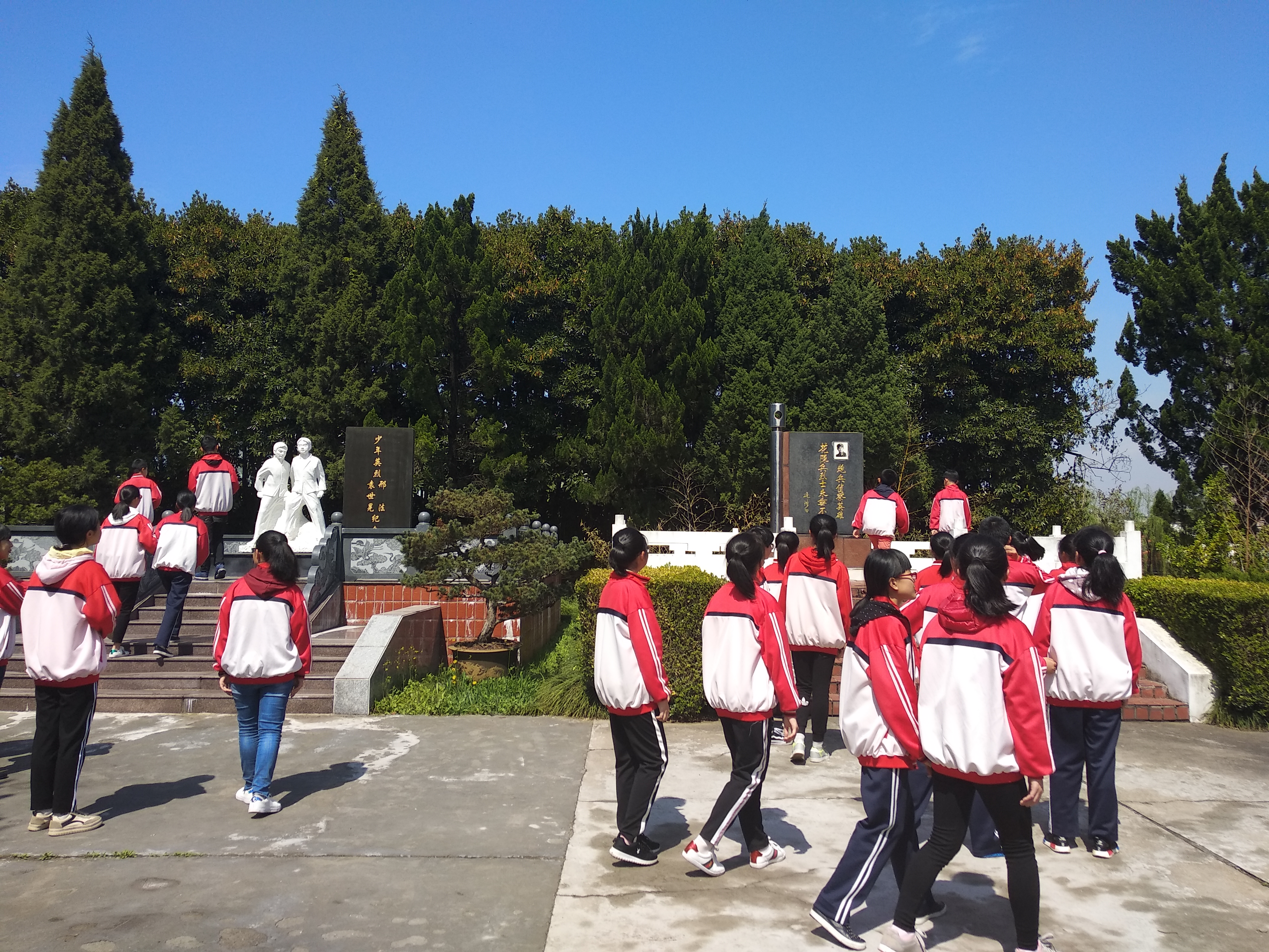中午13:00,同学们穿着整洁的校服,佩戴着鲜艳的红领巾和耀眼的团徽,在团委书记兼政教处副主任黄杰老师的带领下,来到烈士陵园。首先代表们向革命先烈敬献花篮,在一曲哀乐声中,全体师生代表向革命烈士默哀三分钟;之后每位代表手持鲜花聆听革命烈士事迹报道,怀着对先烈的无比敬仰,代表们排成一列一一上台,围绕纪念碑绕碑一圈以表达瞻仰哀思之情,同学们立誓将继承遗志、不忘过去、刻苦学习、开拓未来、报效祖国。最后黄杰书记代表学校向同学们提出了殷切的希望。