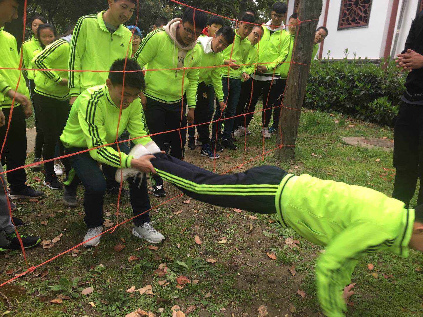 一张密密的“电网”横在眼前,一旦触碰,“后果”不堪设想。——这就是“模拟电网”。团队成员间的配合是取胜的法宝,细节也不可忽视。活动中同学们仔细观察,谨慎判断,制定方案,准备突破。看,队员们架起了“人梯”,肢体合作更增加了相互间的信任感。穿越“电网”,成功了!“面对困难,一个人的力量是有限的,惟有团结一致,精诚合作,才能战胜困难,勇往直前。”——这就是这个活动告诉大家的道理。
