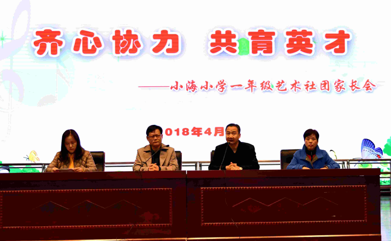 阳春三月,万物复苏,繁花吐蕊。4月3日下午,小海小学一年级艺术社团家长会暨社团教学观摩活动在学校大礼堂举行。本次会议由黄文龙副校长主持,曹立聪校长、南通民乐团何团长、艺术组陈秋樱老师及一年级艺术社团的家于百忙中抽空参加此次会议。