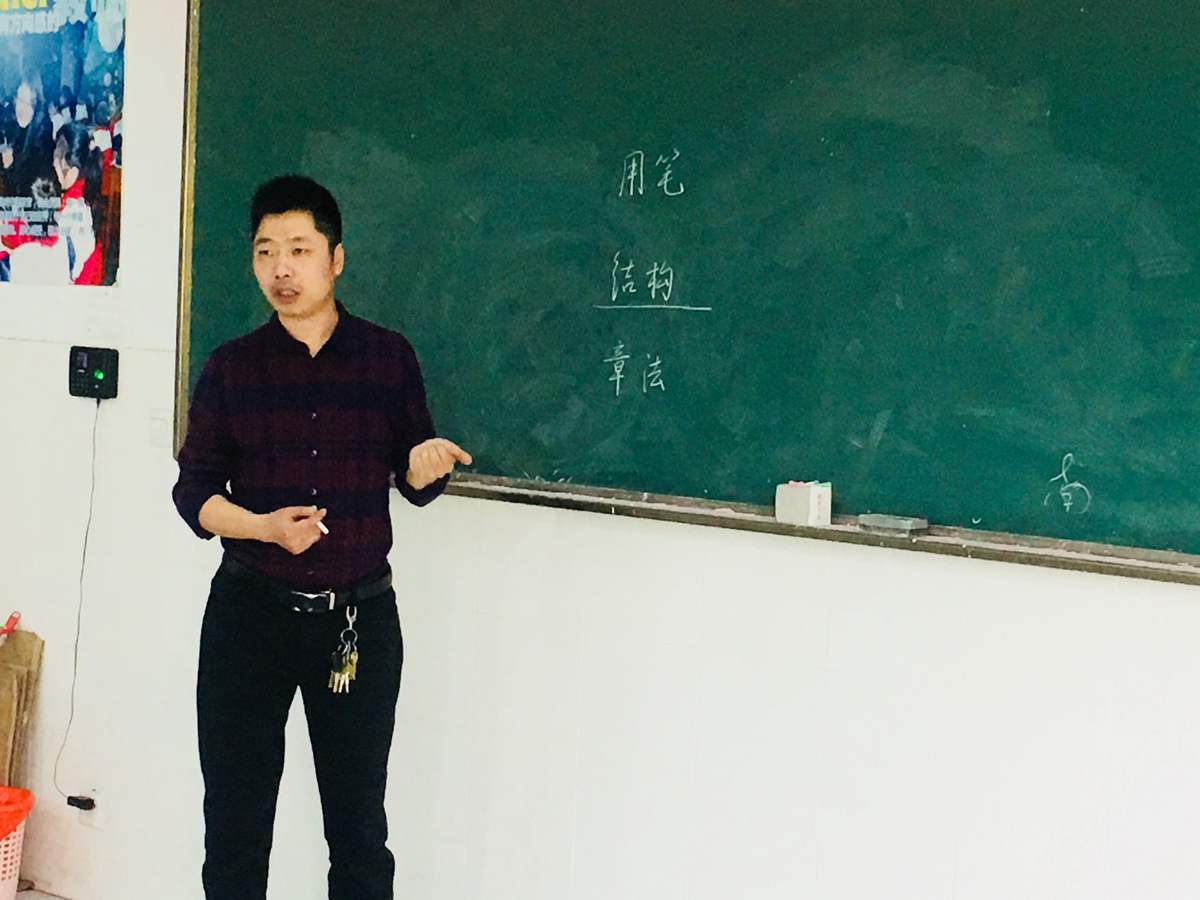 培训课堂上,王老师首先结合自己的经验,提出了写好粉笔字的三大要素,即用笔、结构、章法。接着,王老师具体传授了写好楷体字的重点——掌握好字的基本结构,即横平竖直、撇捺开张、上紧下松、左收右放几个要素。针对这四个传统写字习惯,王老师都做了详实地示范及讲解。随后,王老师就行书这一字体也进行了简单的介绍。