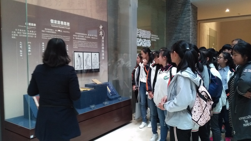啬园游结束后,学生来到了今天行程的最后一站——中华慈善博物馆。在工作人员的引导和讲解下,“泛舟之役”“药方洞”“方婆遗风”等善举让学生们明白了中华慈善事业的源远流长,明代傣文贝叶经、“庆龄”印章戒指、南通修车老人胡汉生生前所用工具等珍贵慈善藏品让他们大开眼界,更领悟到无论是遭受天灾兵祸,还是遇到贫病急难,总会无数仁人善士用自己的博爱烛照着中华民族向着光明前进。