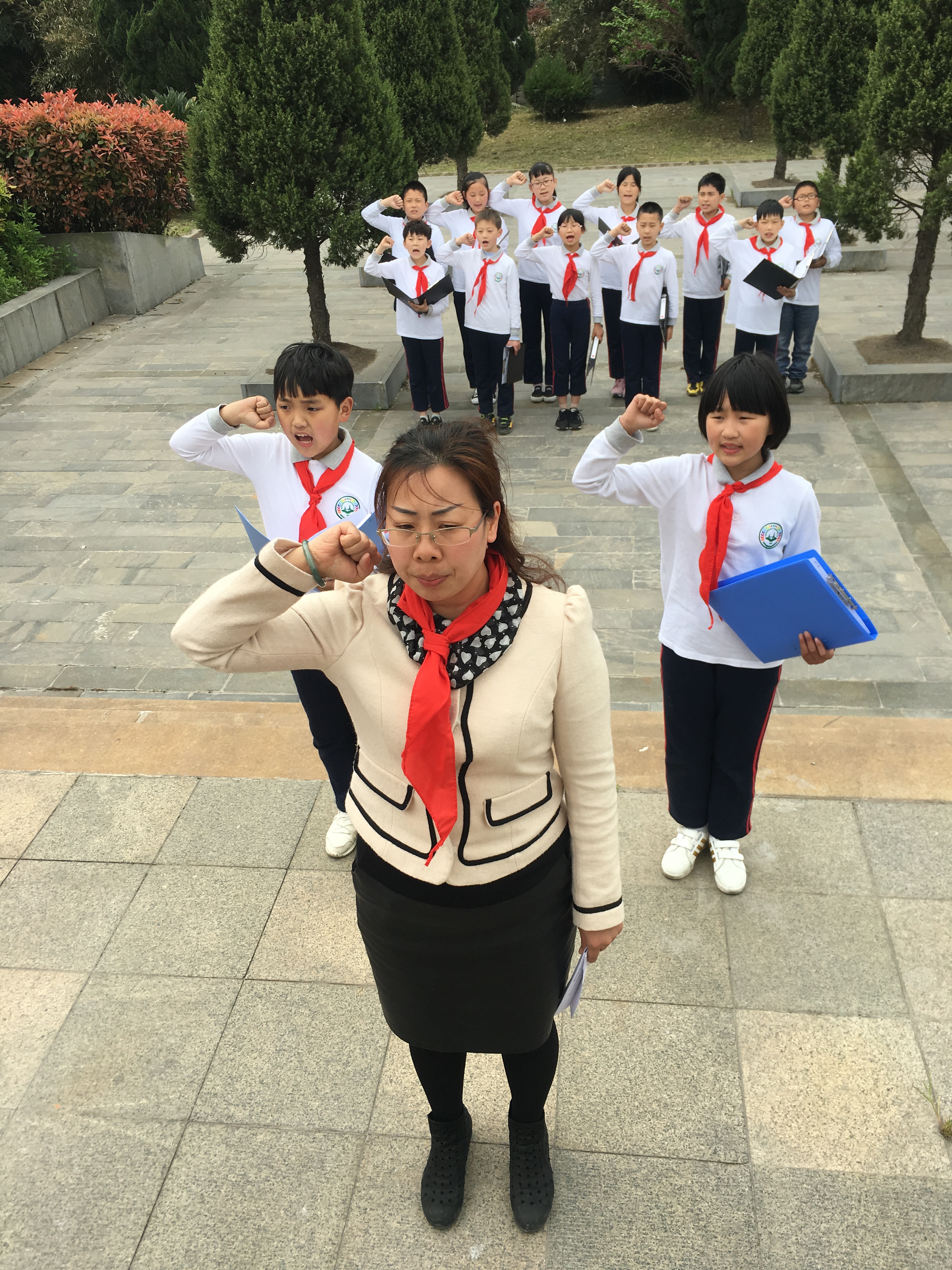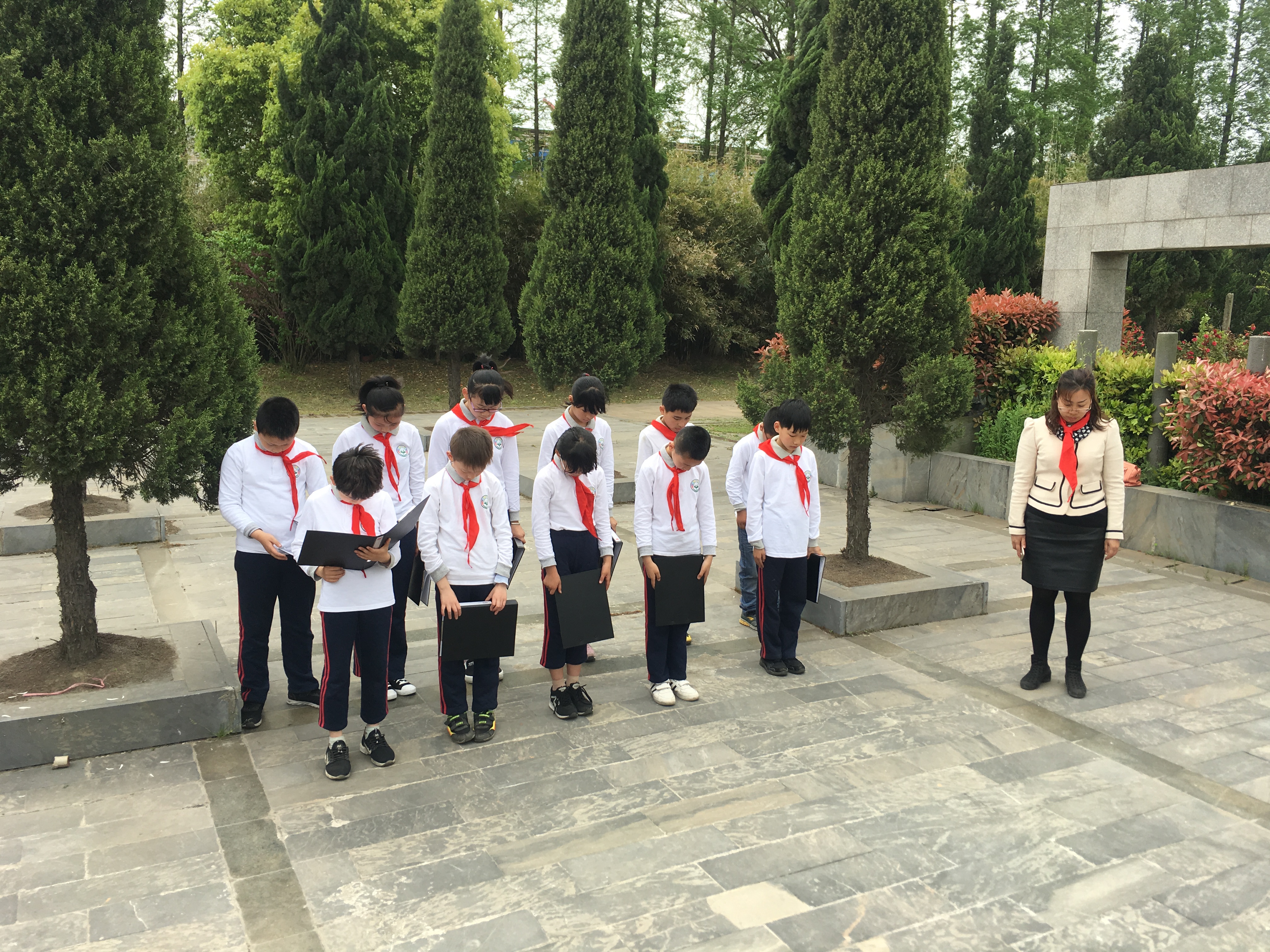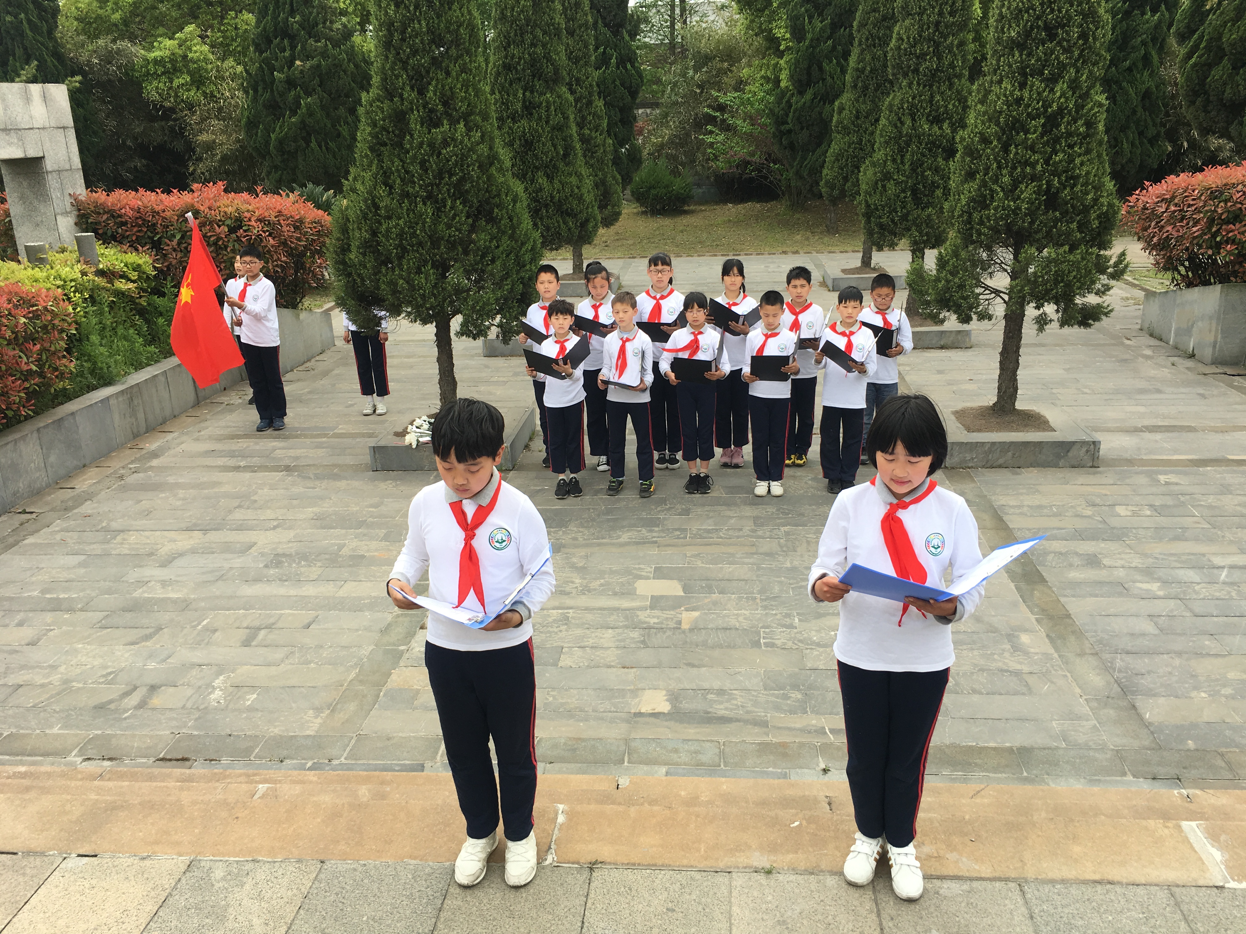 一首诗,一枝花,无以表达少先队员们对革命先烈的崇敬之情,他们举起右拳,铿锵有力地向着革命英雄烈士碑庄严宣誓:我是中国少年先锋队队员,我在队旗下宣誓,我决心遵守队章,在中国共产党和共青团的领导下,做个好队员。好好学习、好好工作、好好劳动,准备着:为共产主义和祖国的伟大事业,贡献出一切力量!