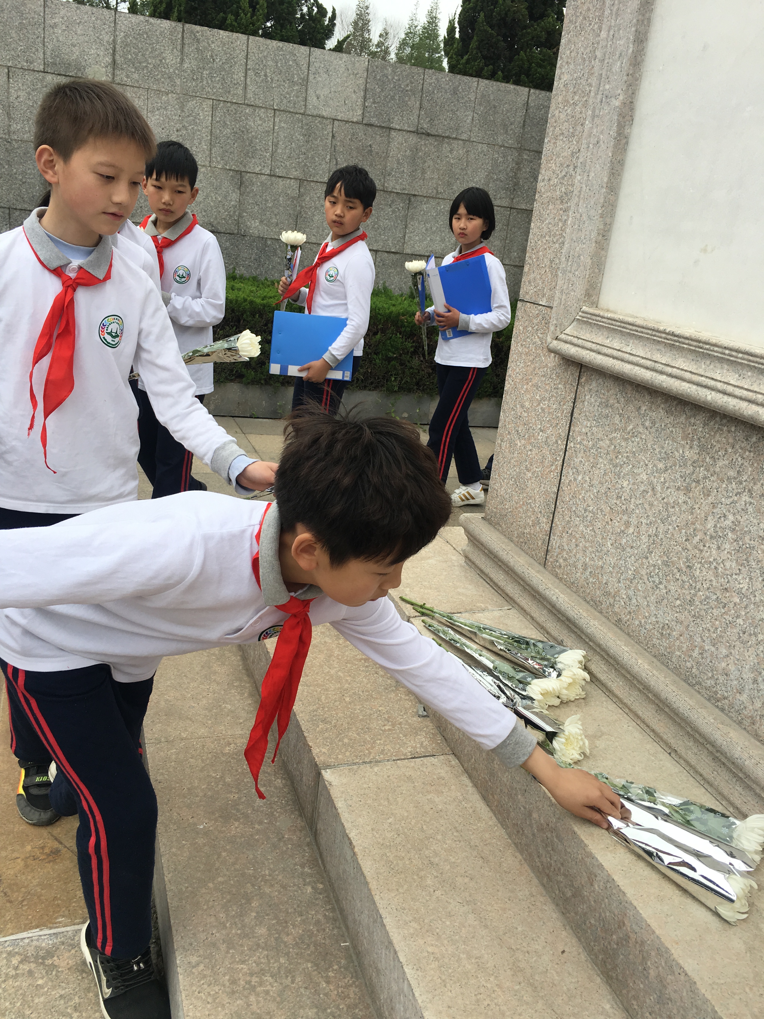 “我们是共产主义接班人,继承革命先辈的光荣传统”,嘹亮的歌声唱给长眠的英雄先烈,支支洁白的菊花,倾述着少先队员们对革命烈士的敬仰,静寂无声的沉默,让每位少先队员静静聆听来自风中的慰藉,那一刻,每一位少先队员都似乎听到战火的喧嚣,没有革命先烈的英勇奋战,没有革命先烈的浩然正气,哪有我们今天的和平与安定,又何曾有如此美丽的校园。