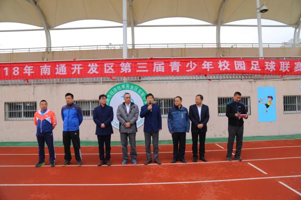 2018年南通开发区第三届青少年校园足球联赛于4月14日在区实验小学开赛。本次赛事由区社会事业局主办,区青少年校园足球工作领导小组办公室承办,区教育督导室羌松延督学、区社会事业局教育处季春华处长也亲临现场。